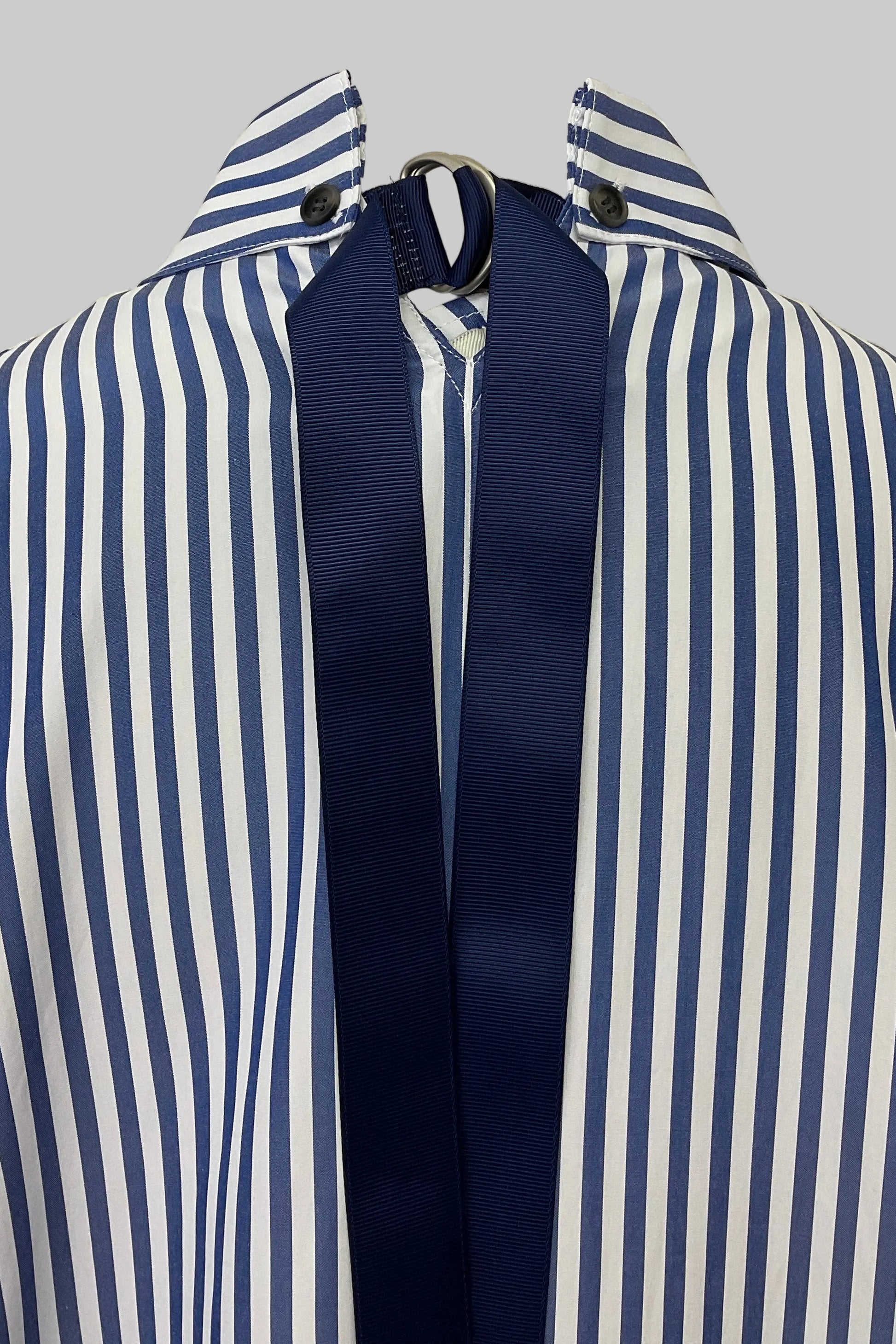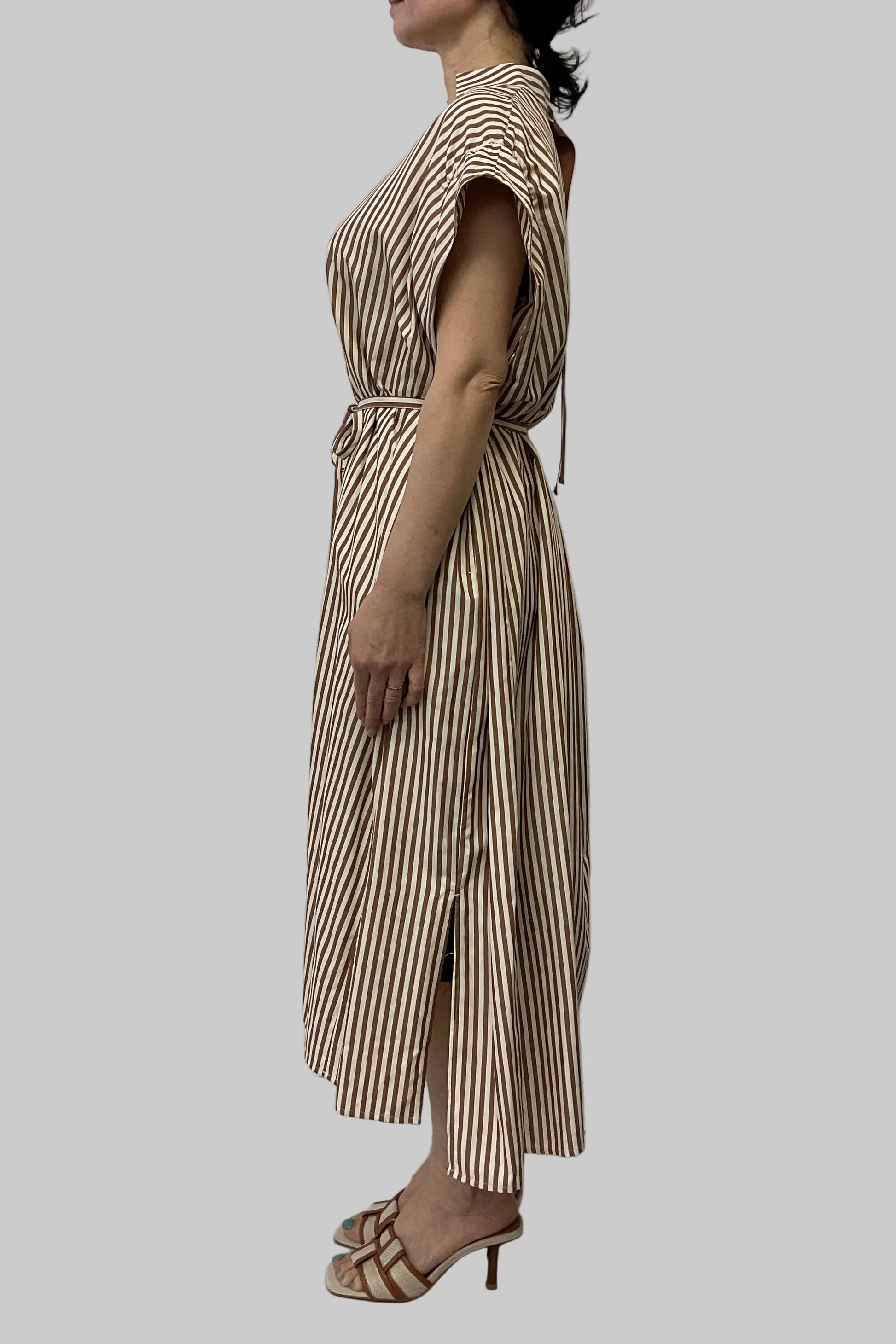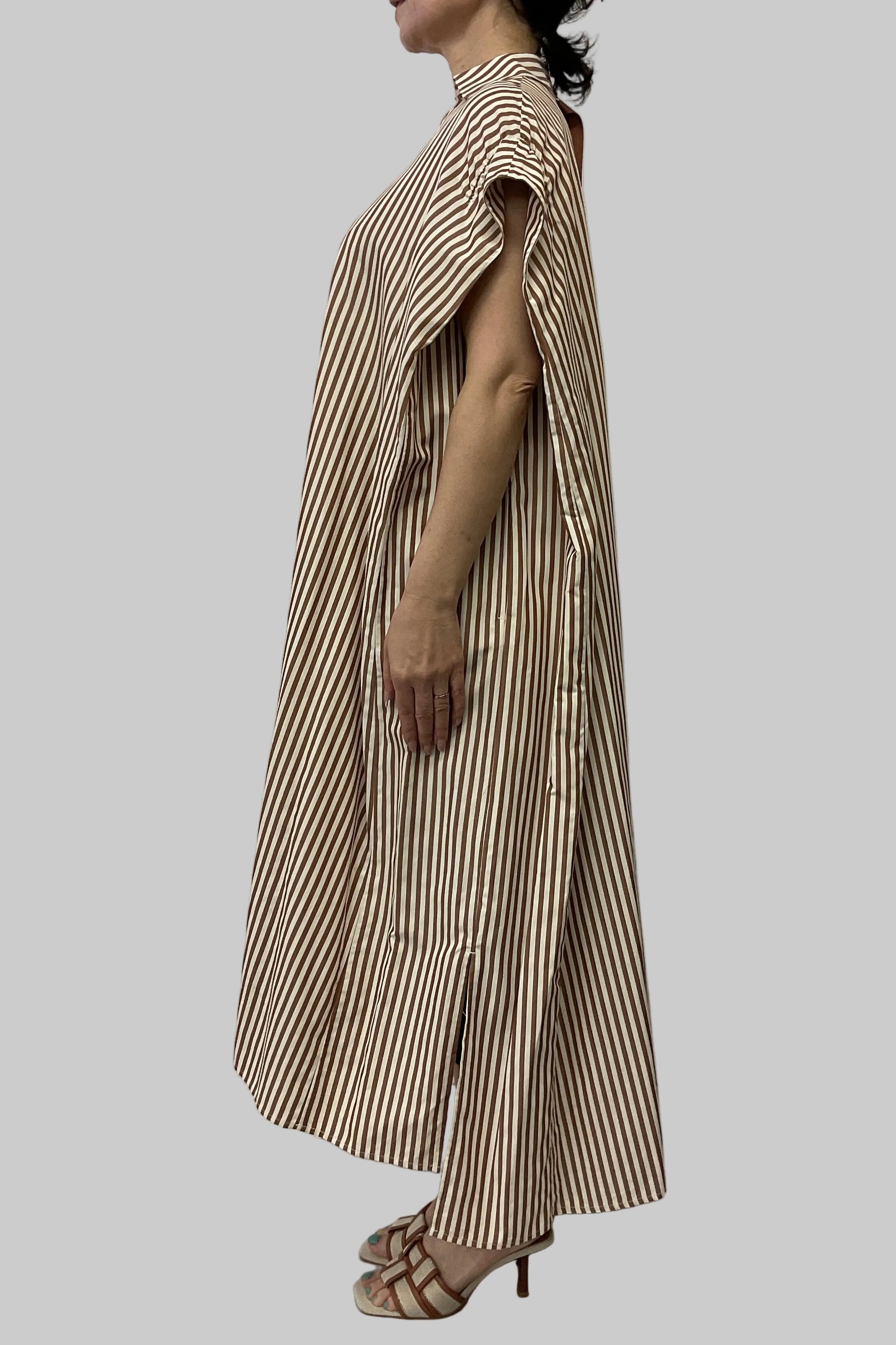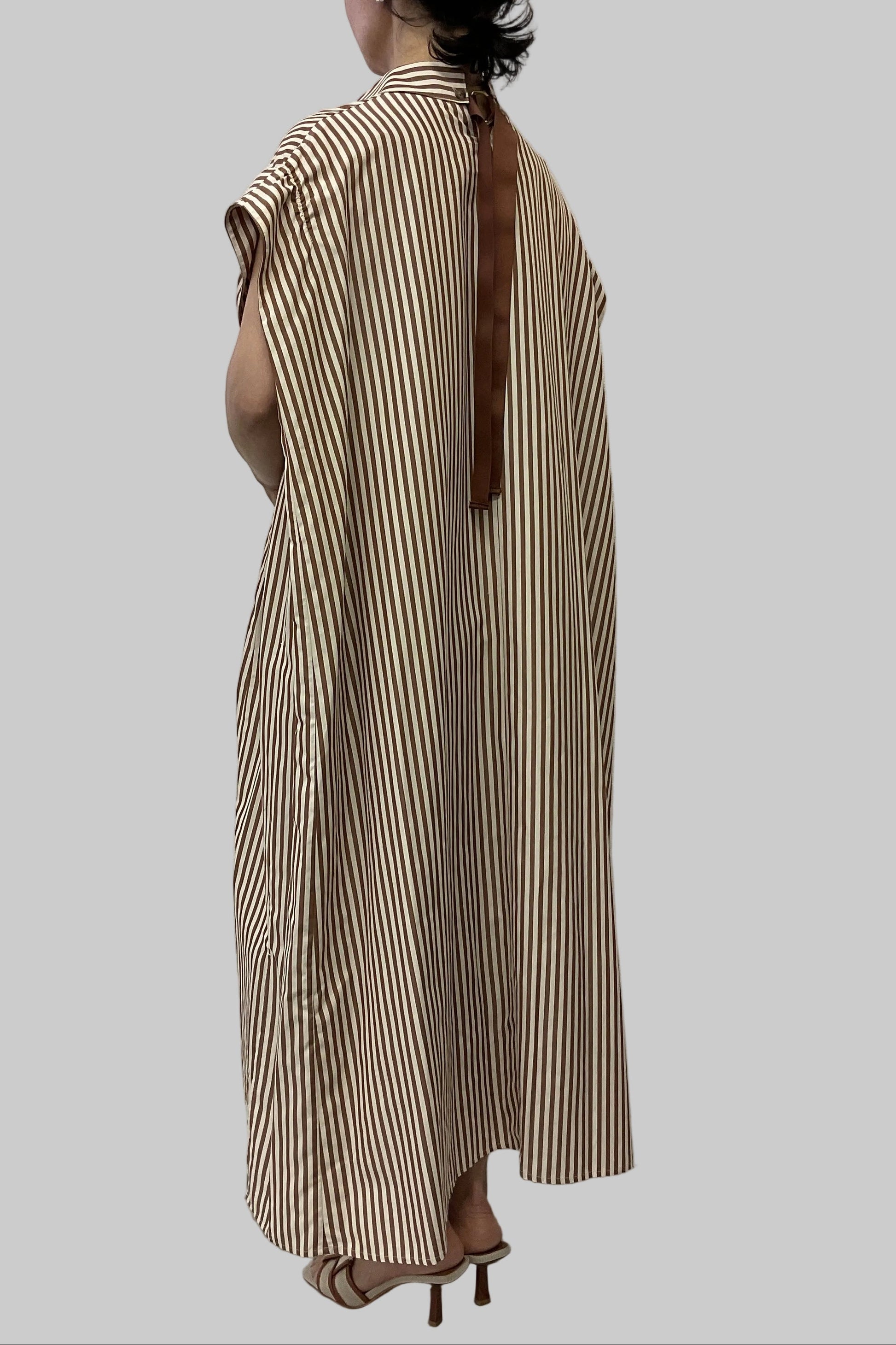 爽やかなストライプ柄が目を引く、ゆったりシルエットのシャツワンピース。