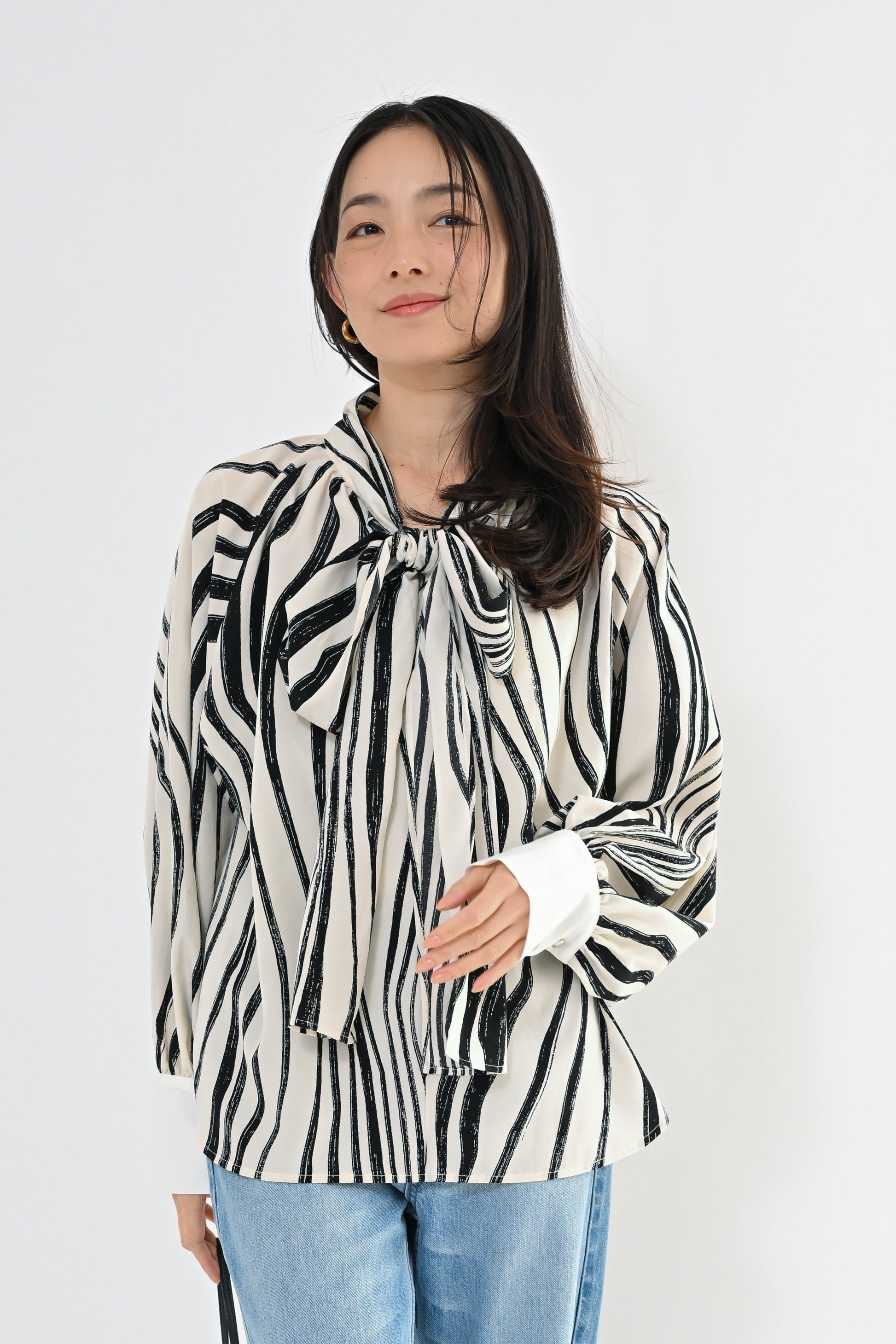 クラシカルな気品と現代的な遊び心を纏う、主役級ボウタイブラウス