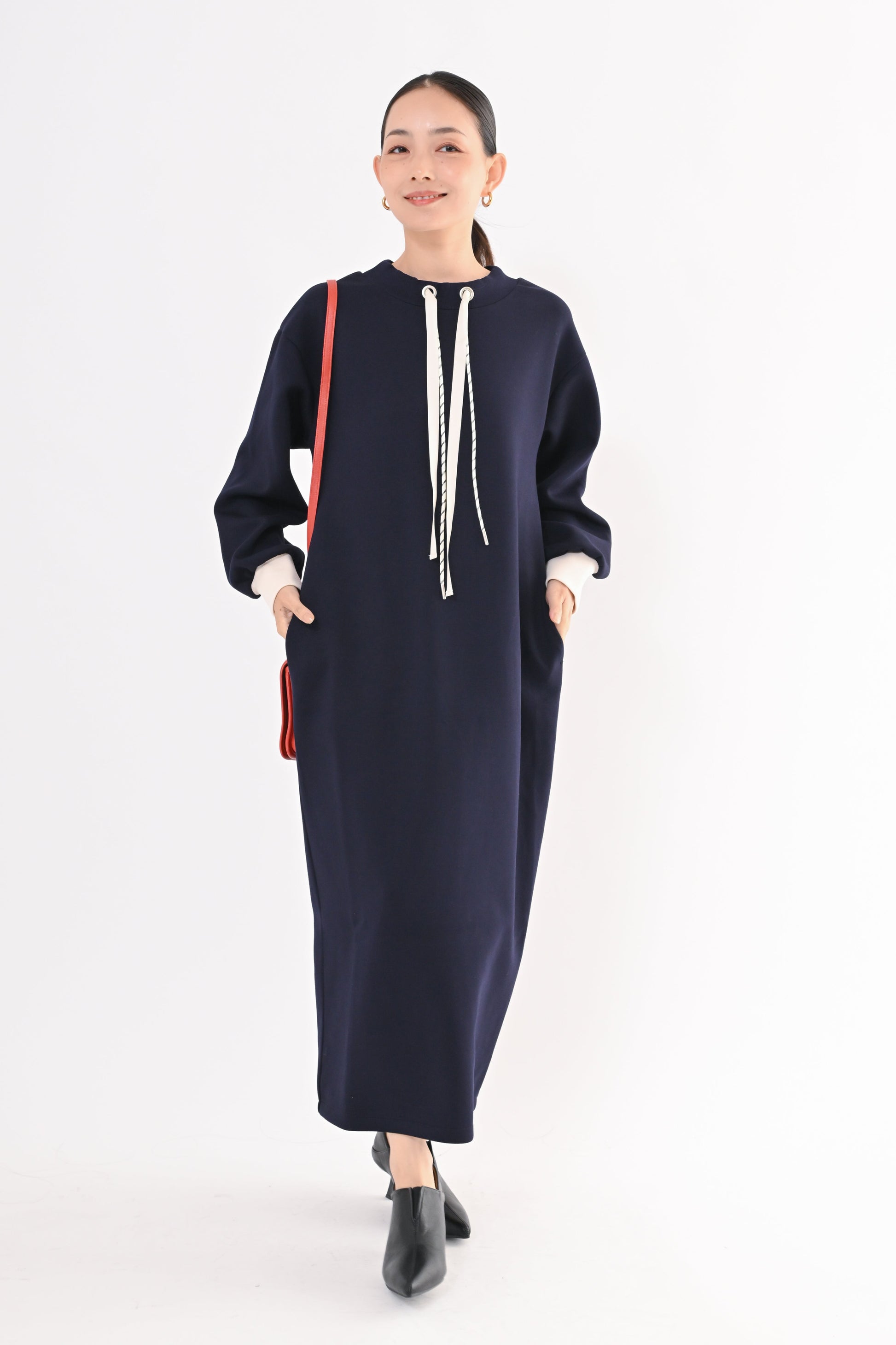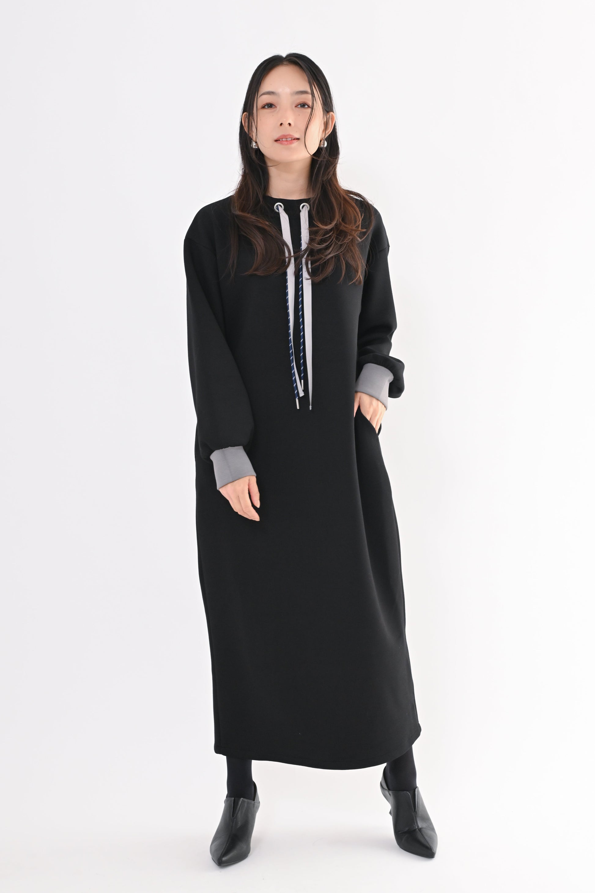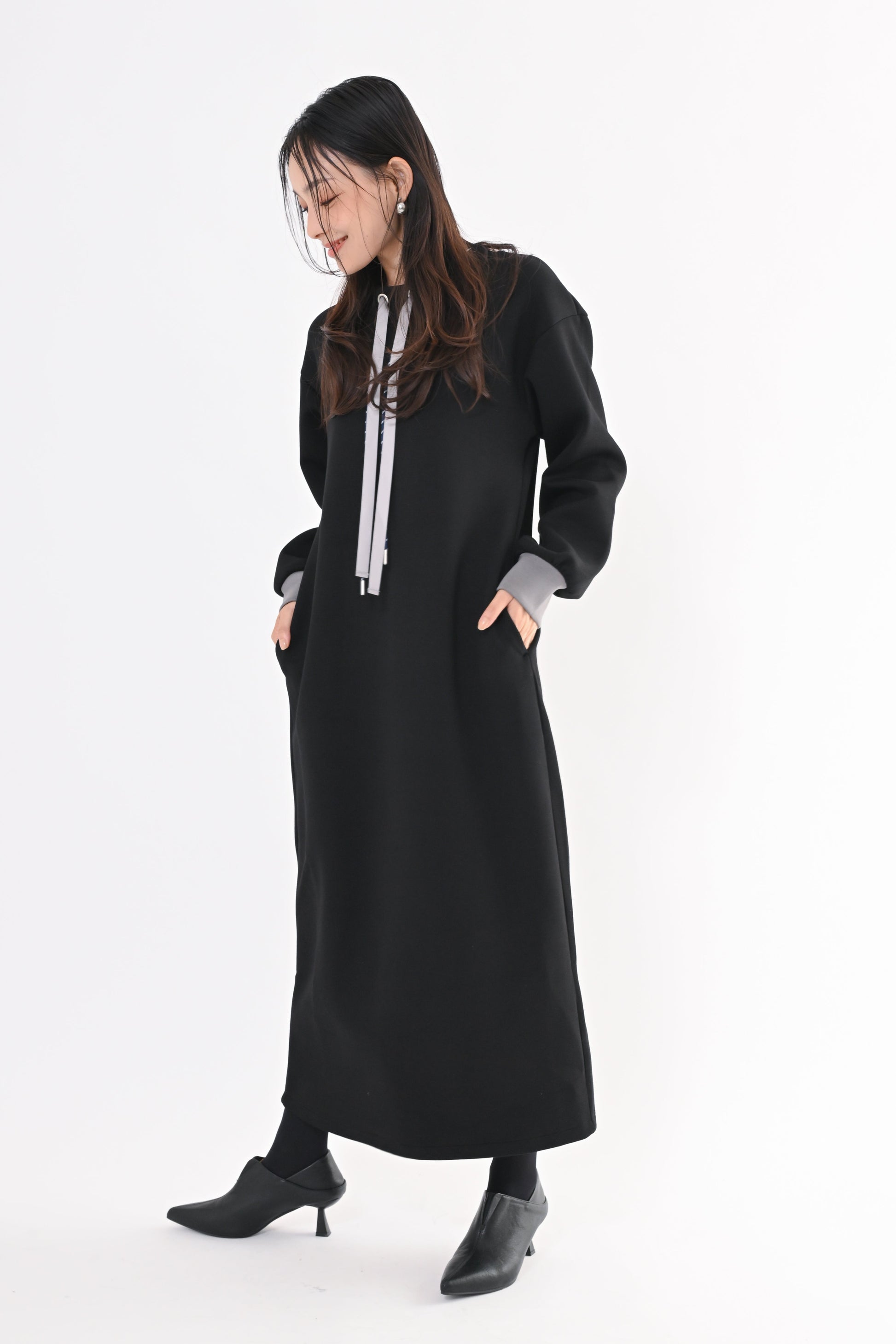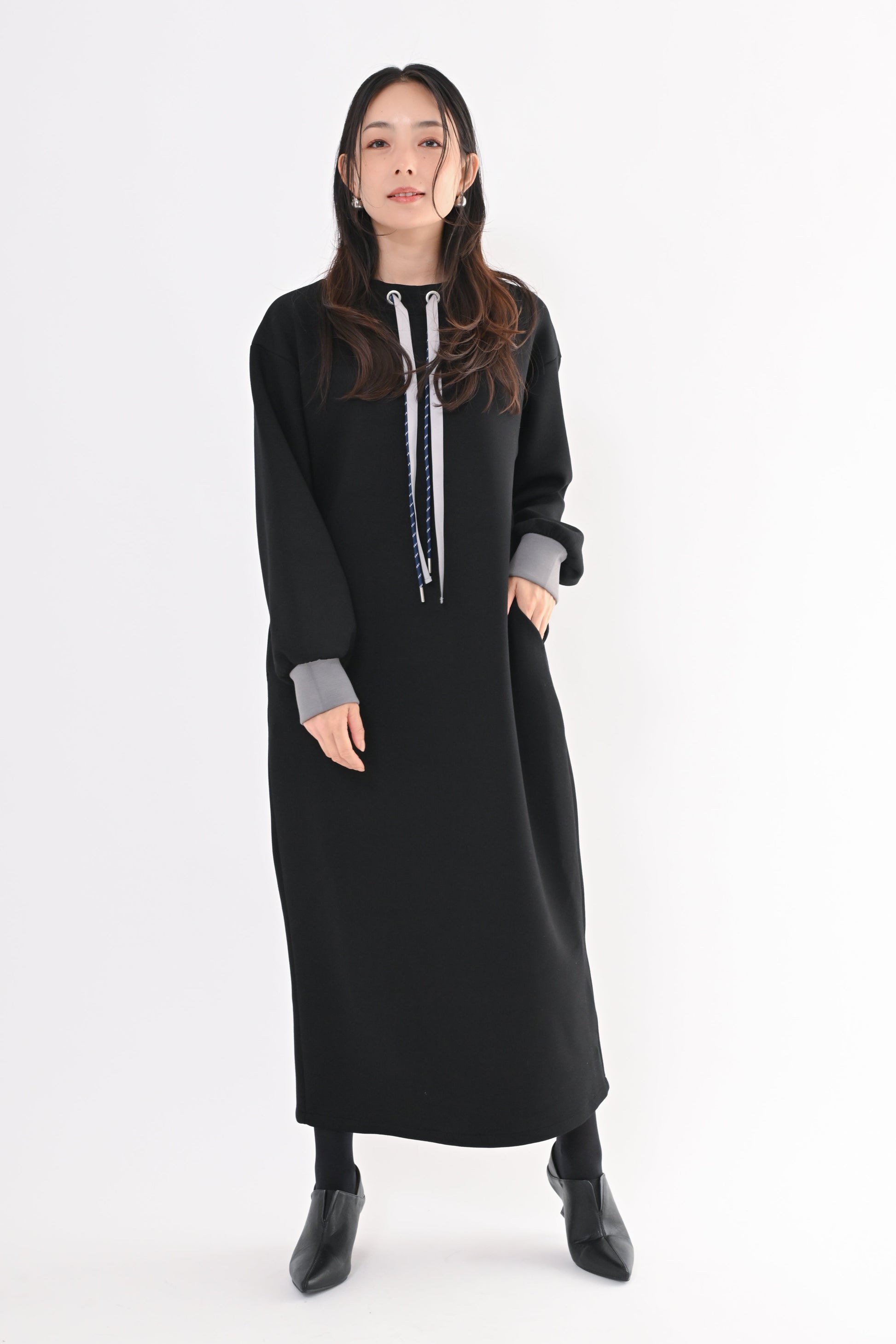 「配色ディテールで差がつく、大人のフーディーワンピース」