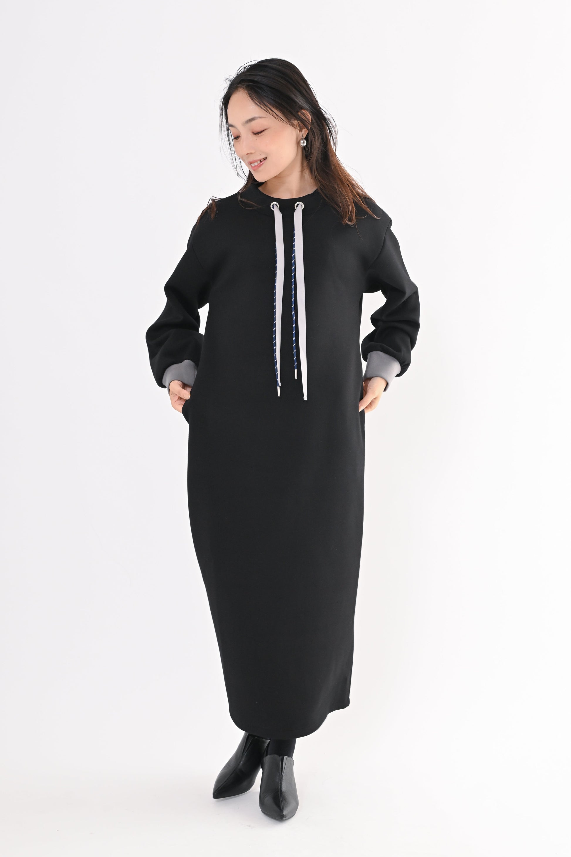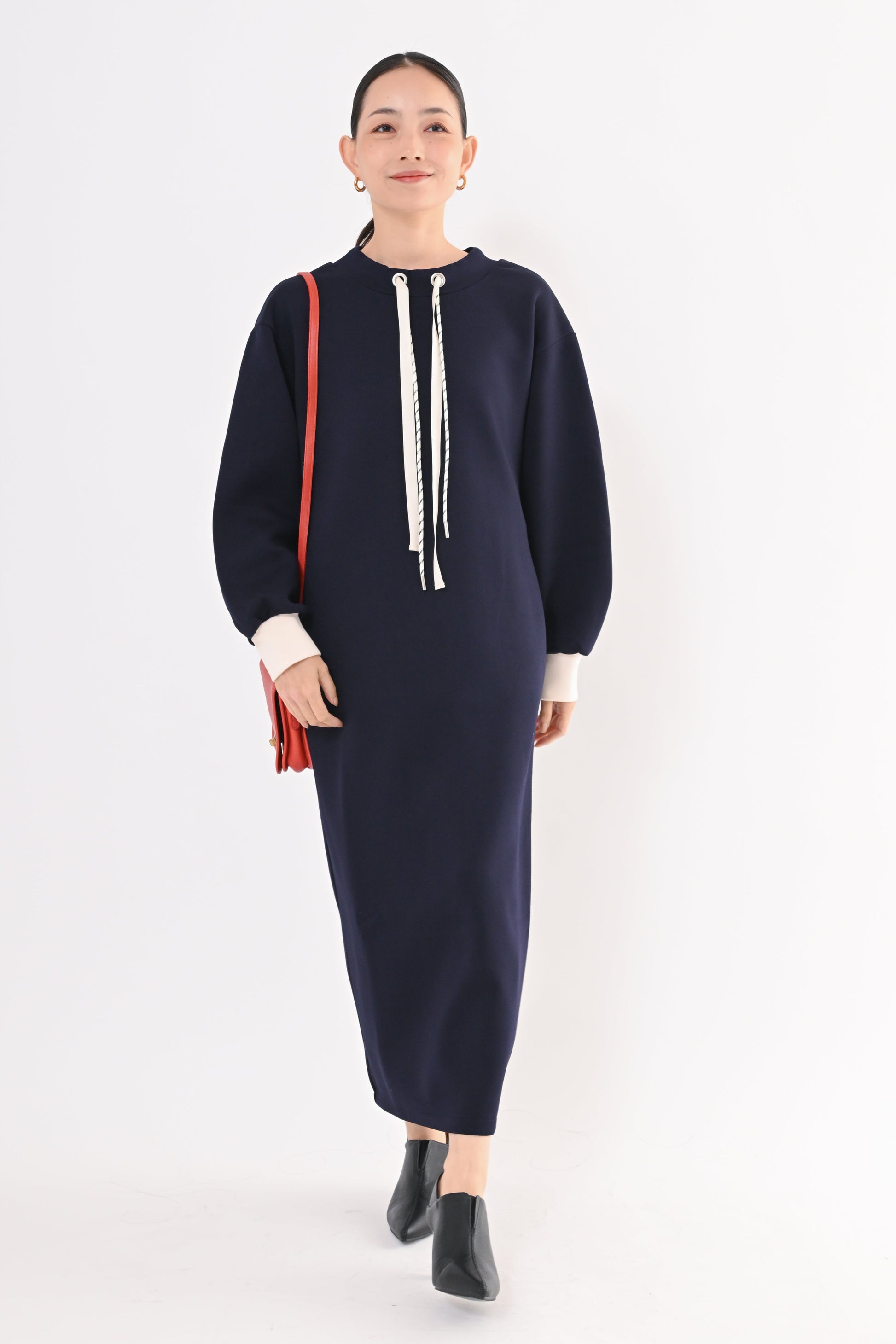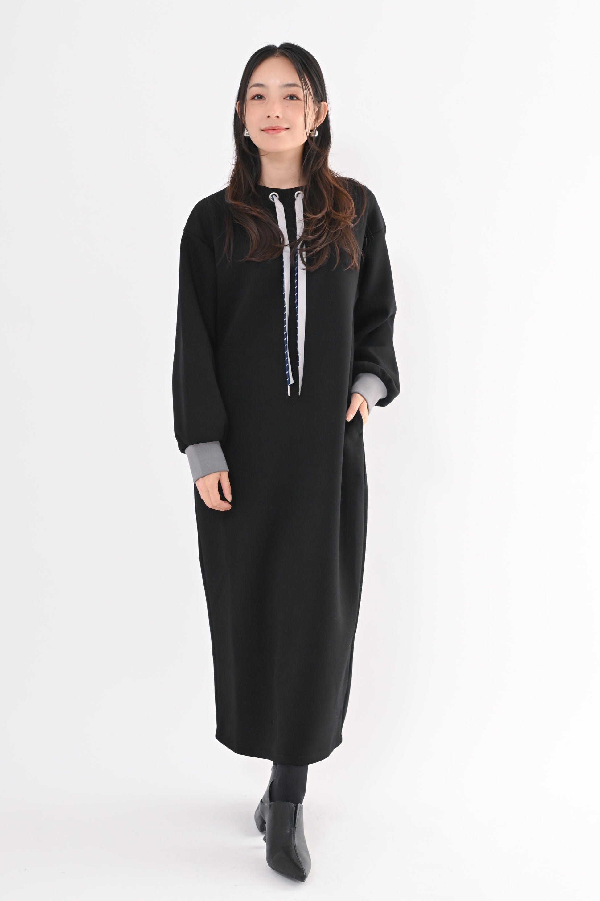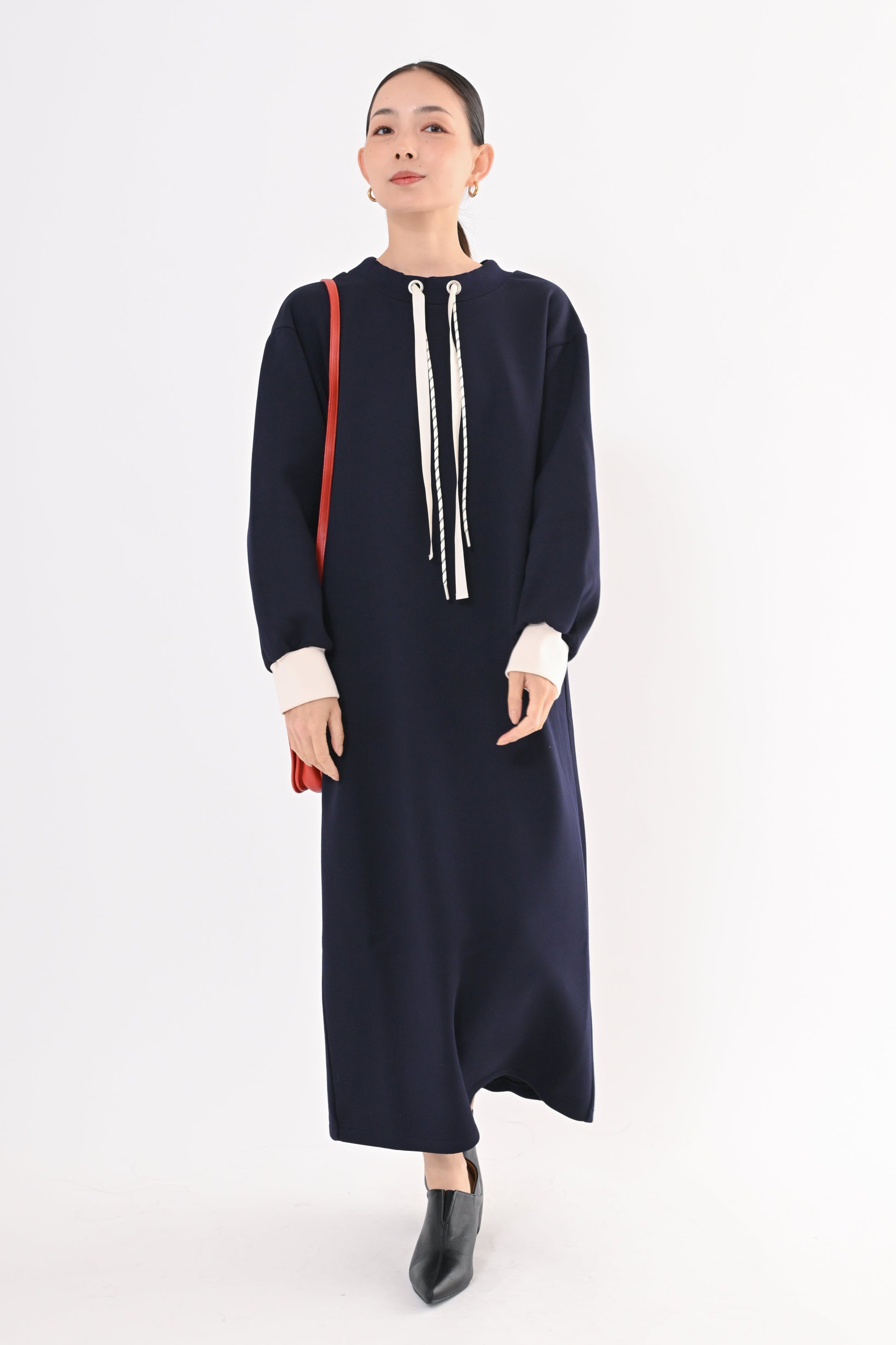 「配色ディテールで差がつく、大人のフーディーワンピース」