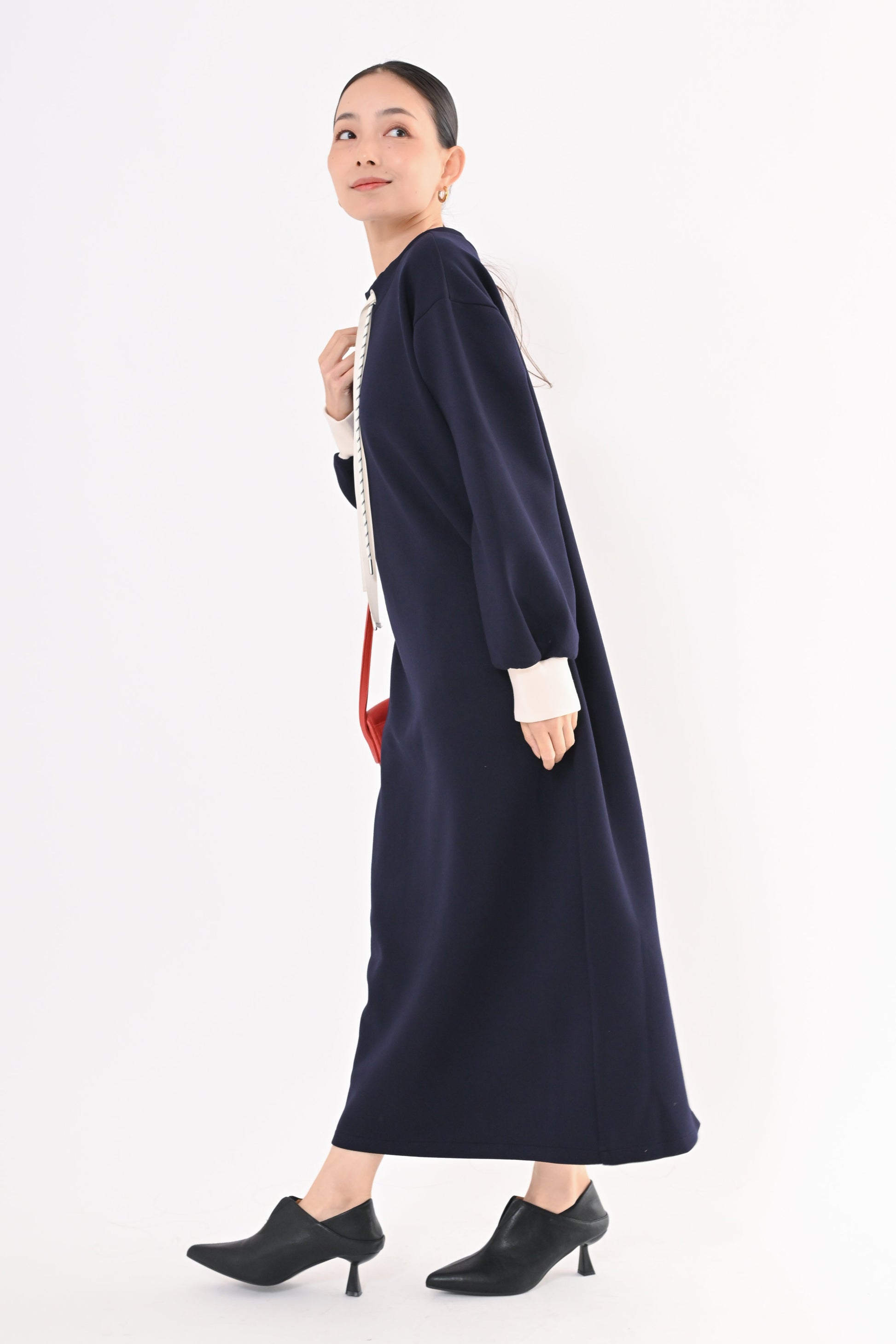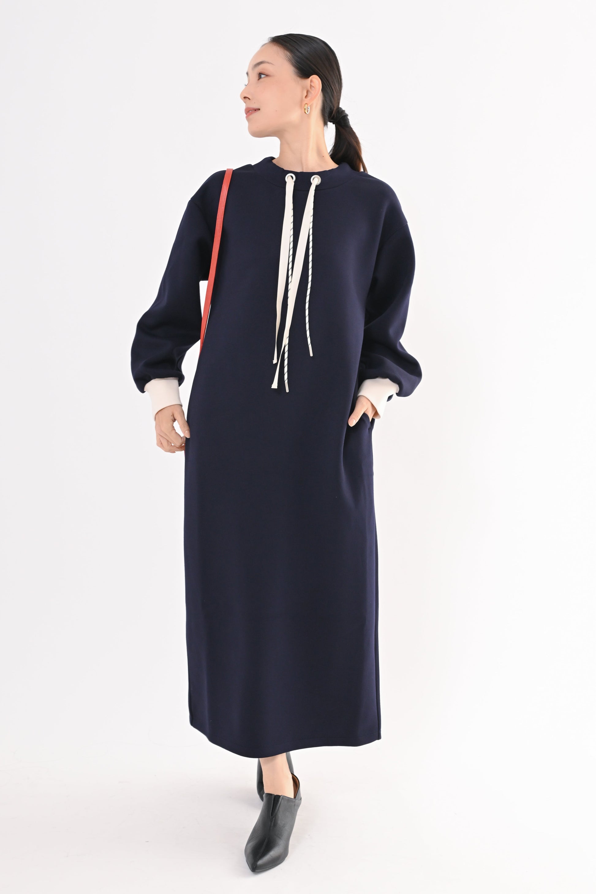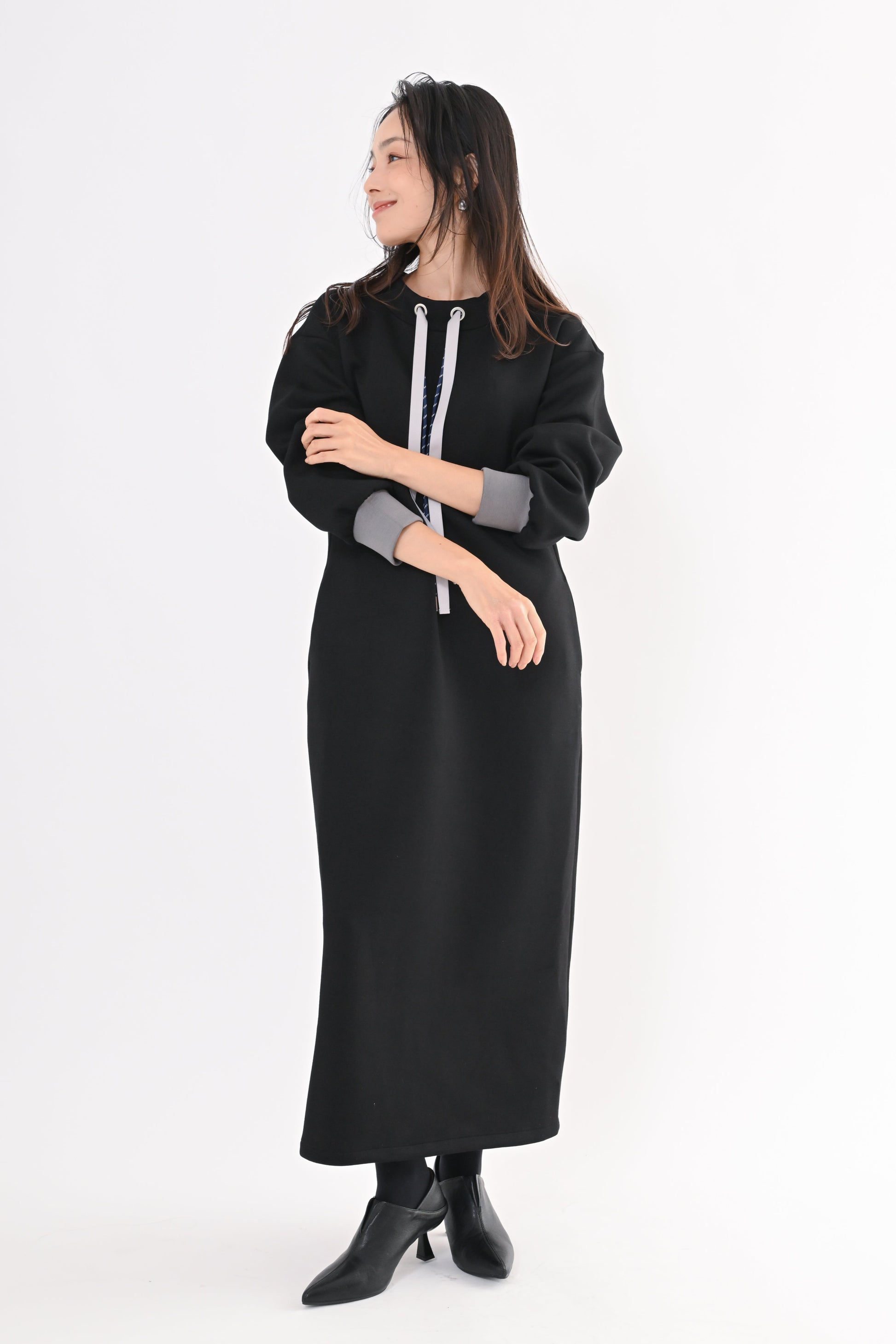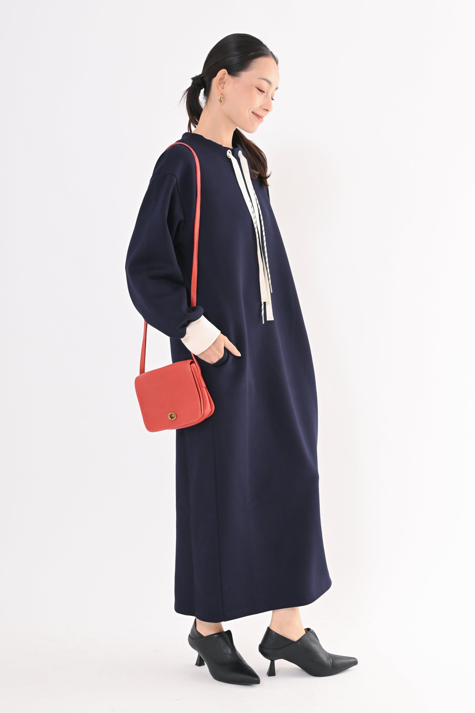 「配色ディテールで差がつく、大人のフーディーワンピース」