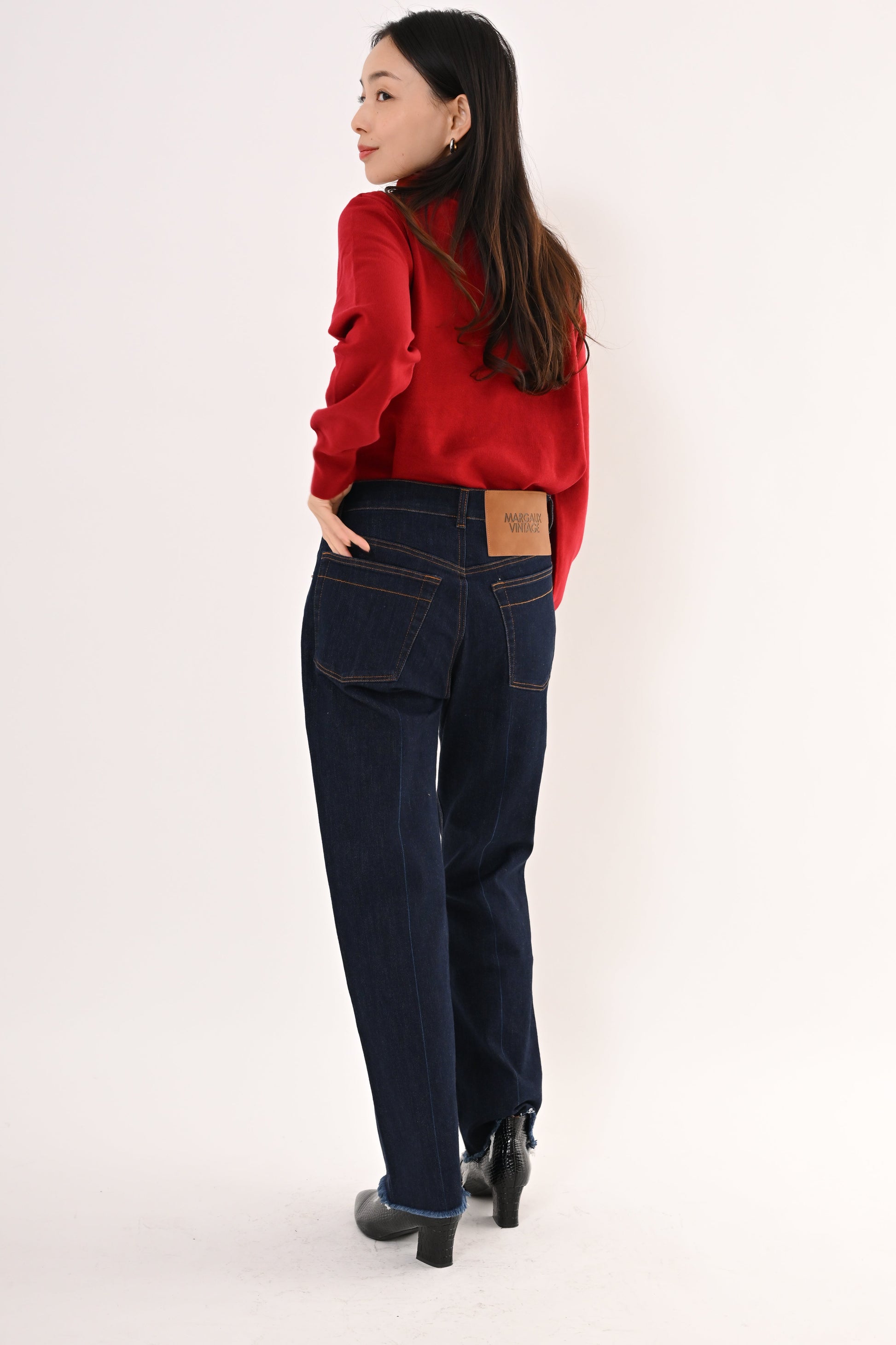 上品なストレートシルエットに、裾のカットオフが軽やかな抜け感を添えた、ヴィンテージムード漂う一本です。