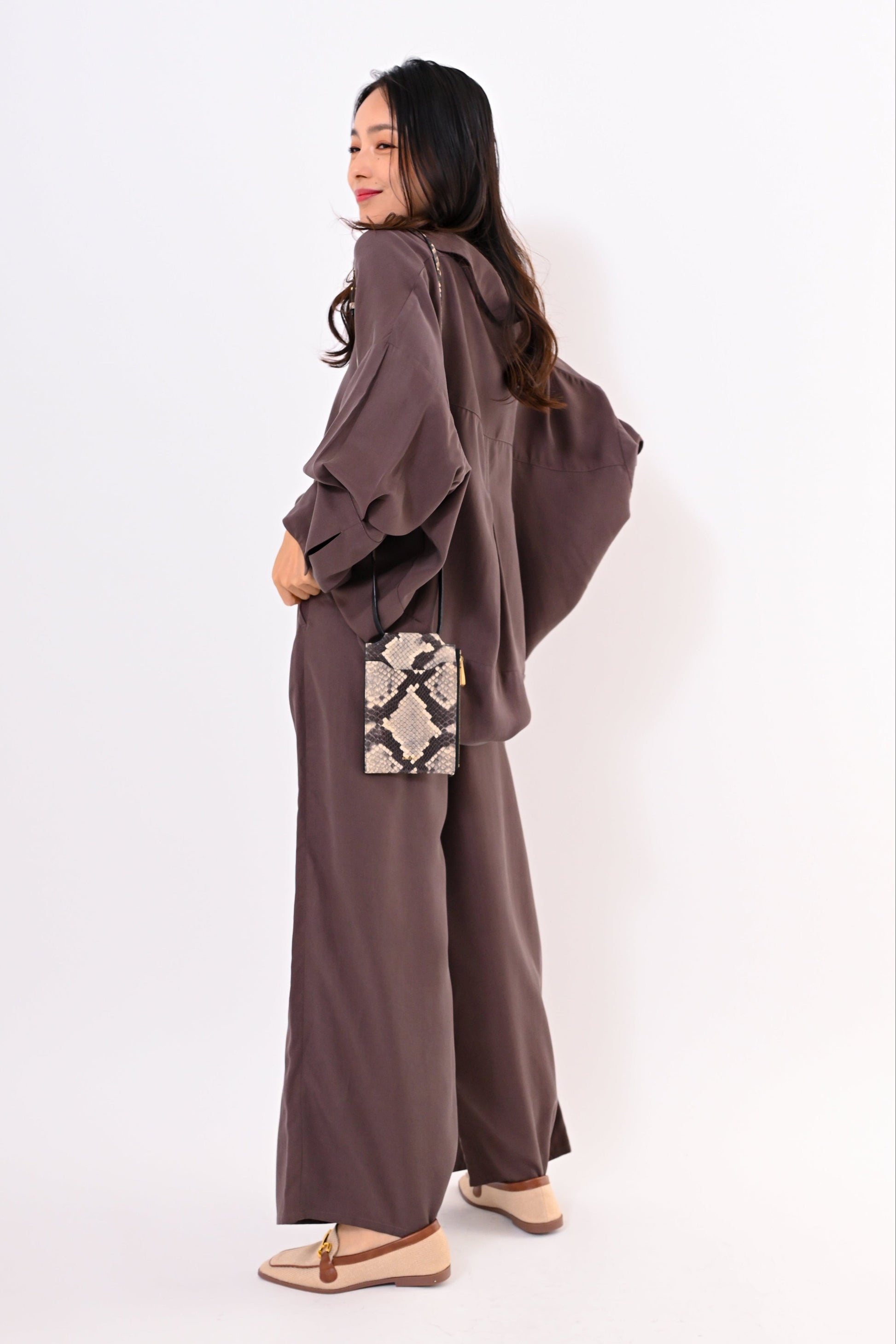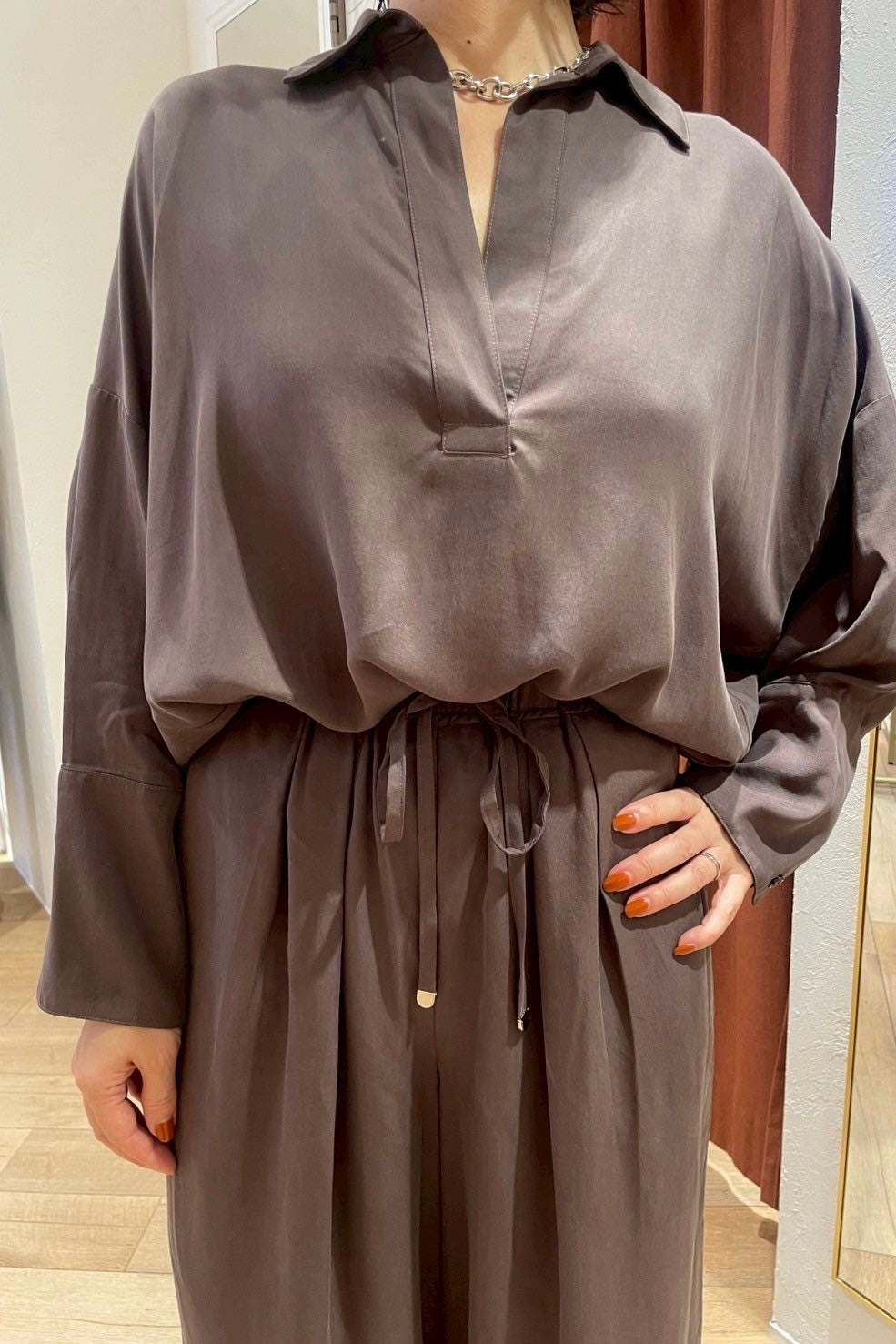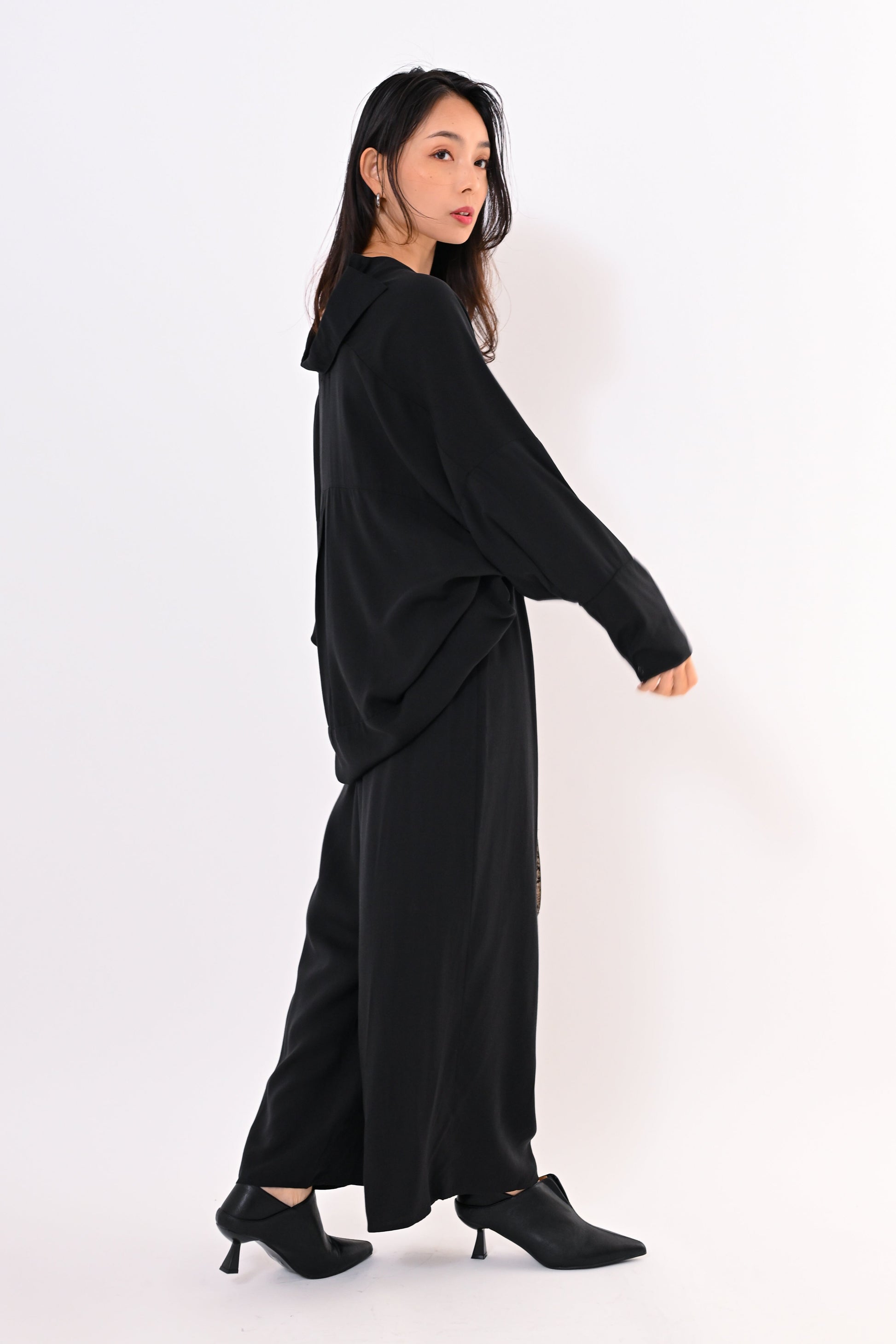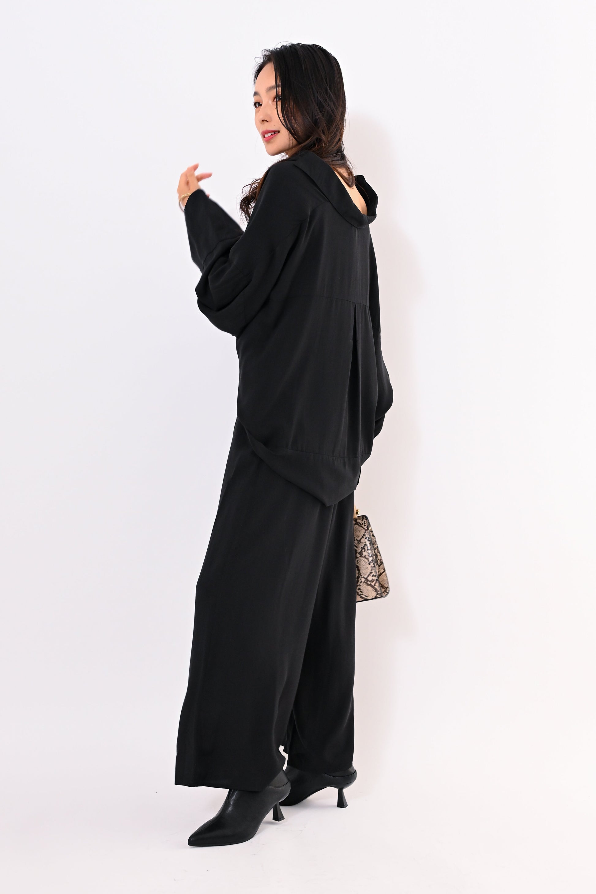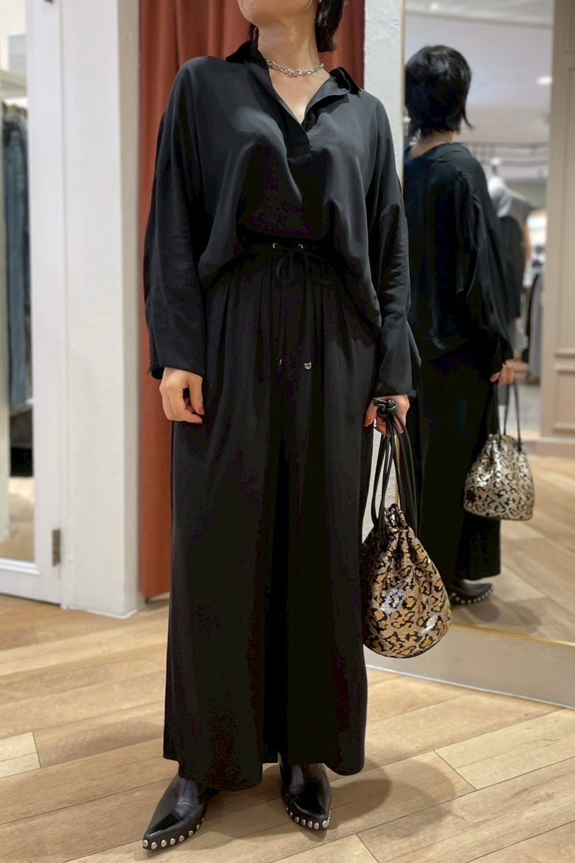 同素材のブラウスも長袖が新登場、よりシーズンライクなセットアップスタイルが完成。