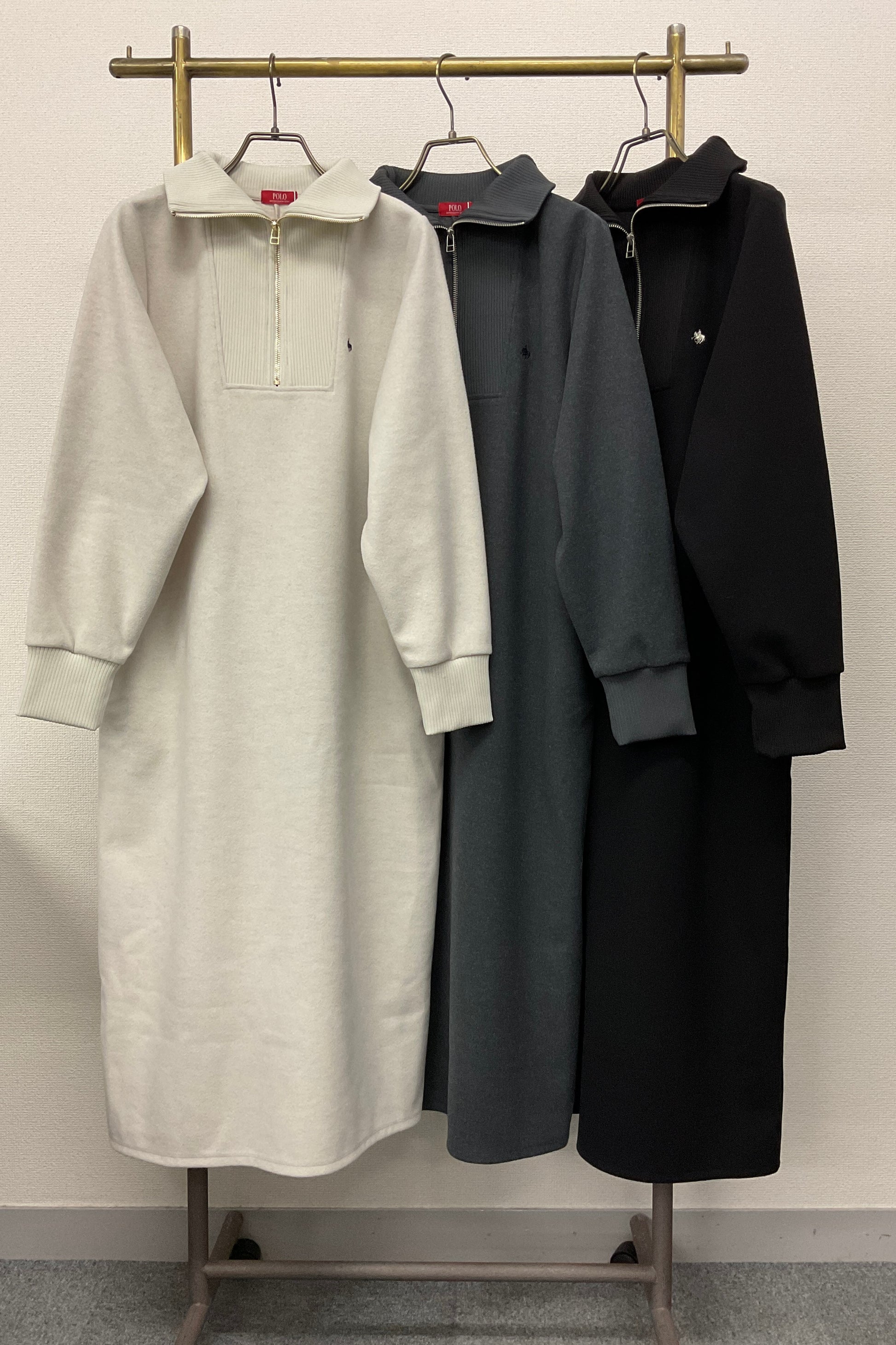 上質な素材感とシンプルなデザインで、大人のデイリースタイルを引き立てるハーフZIPワンピース。