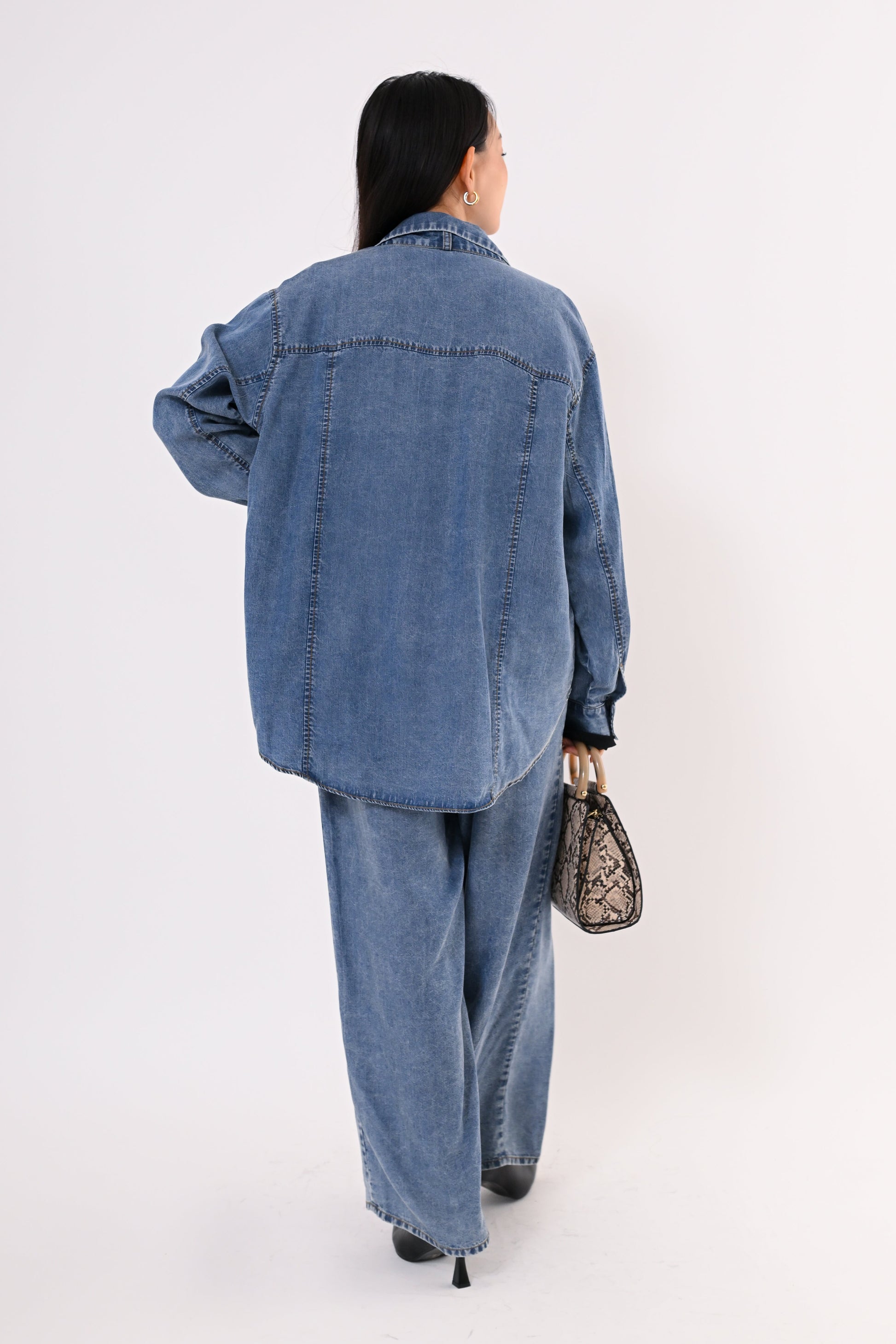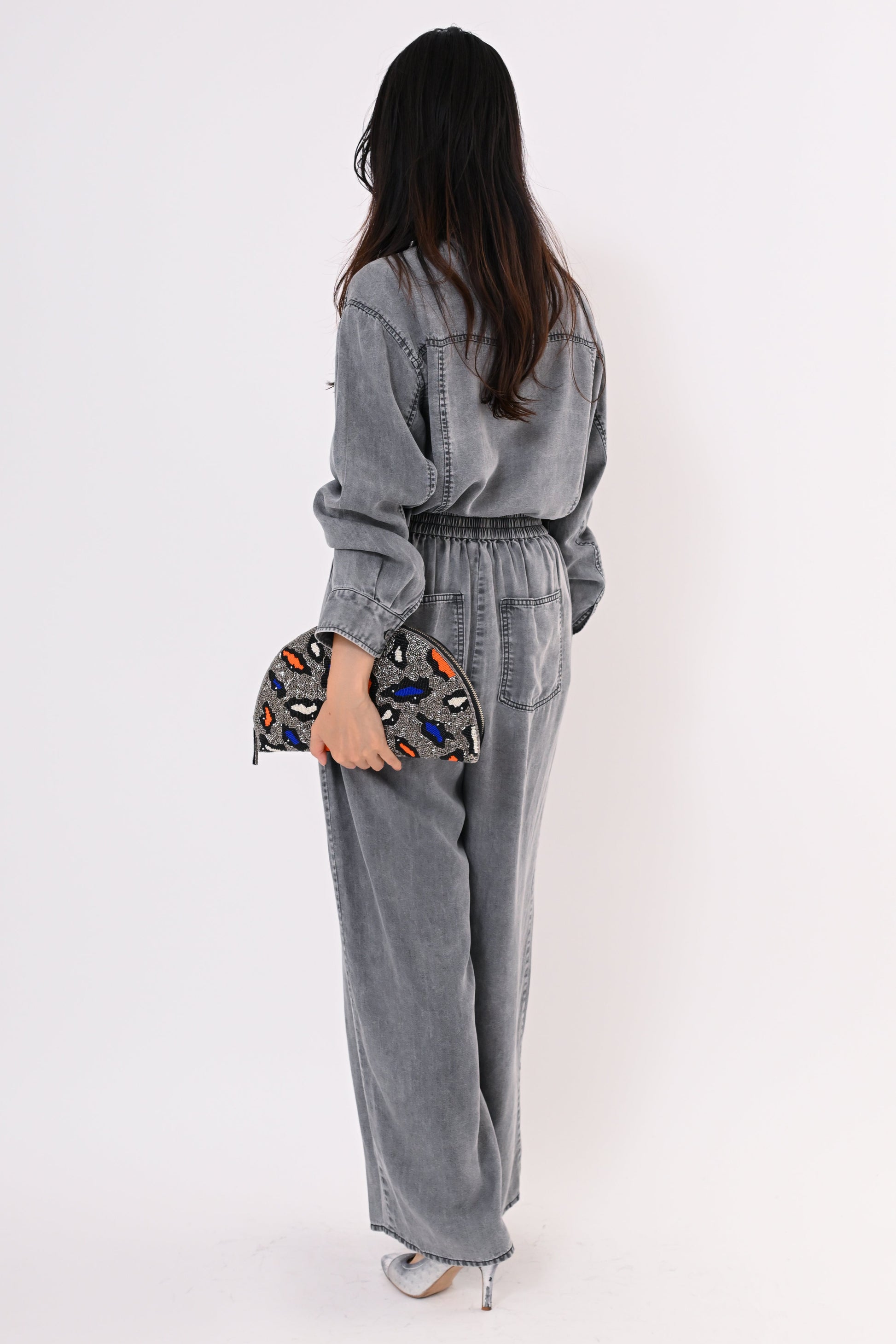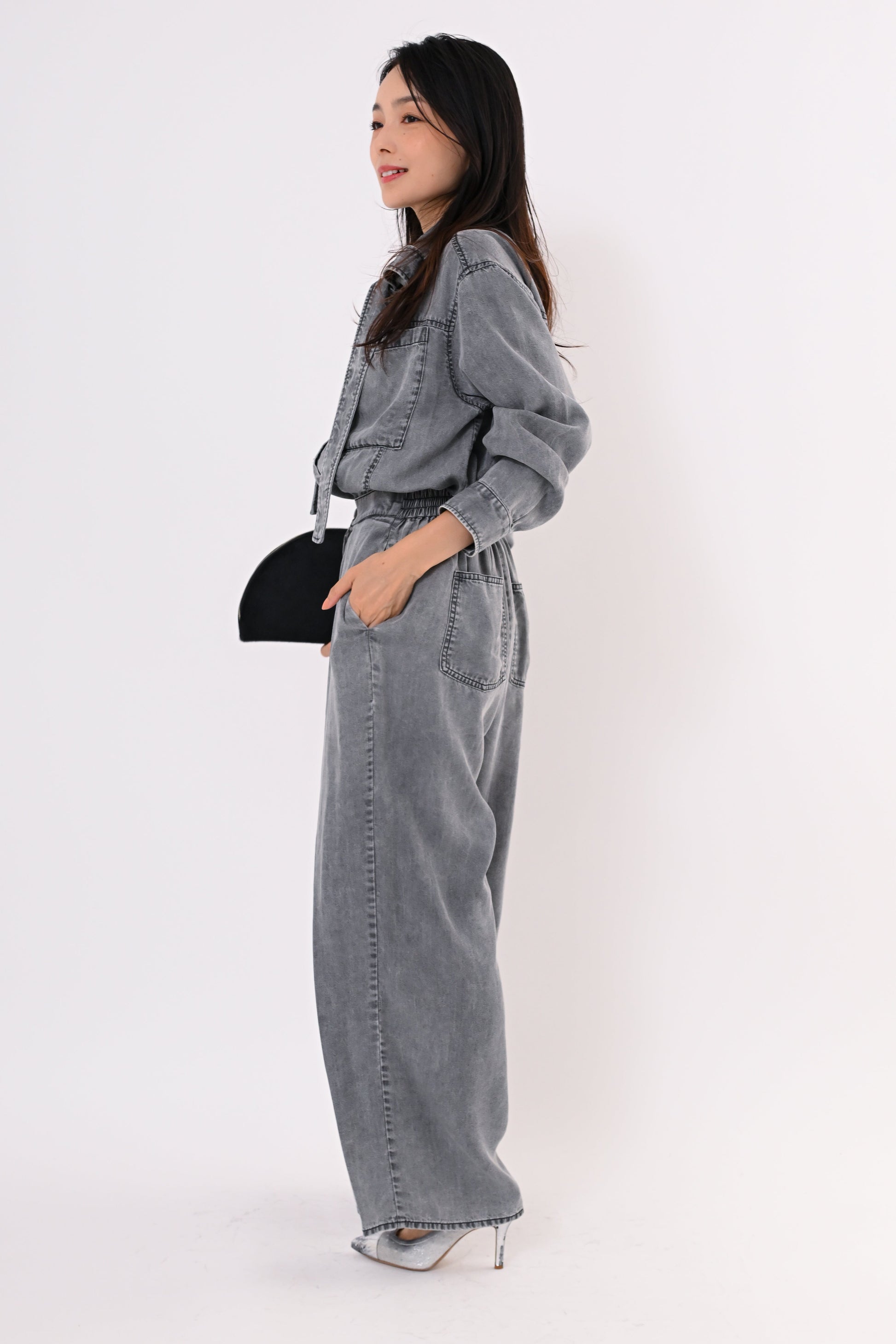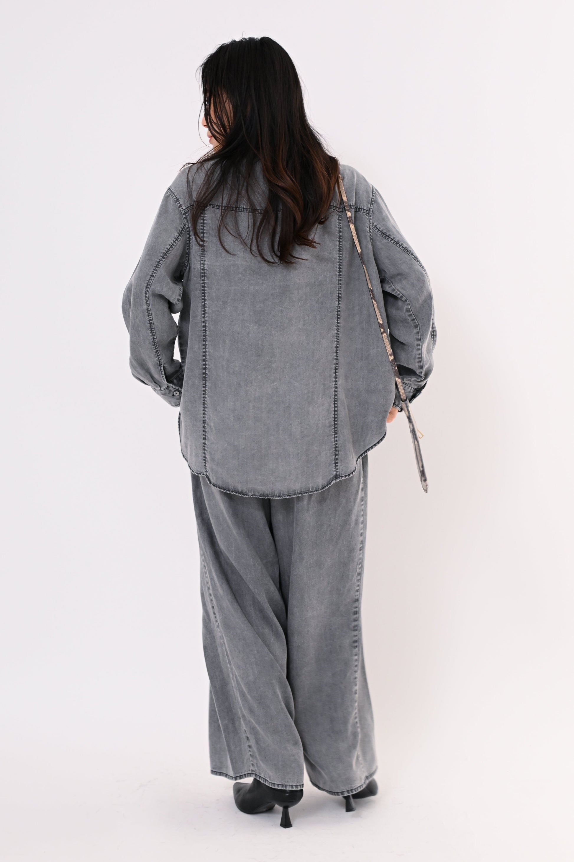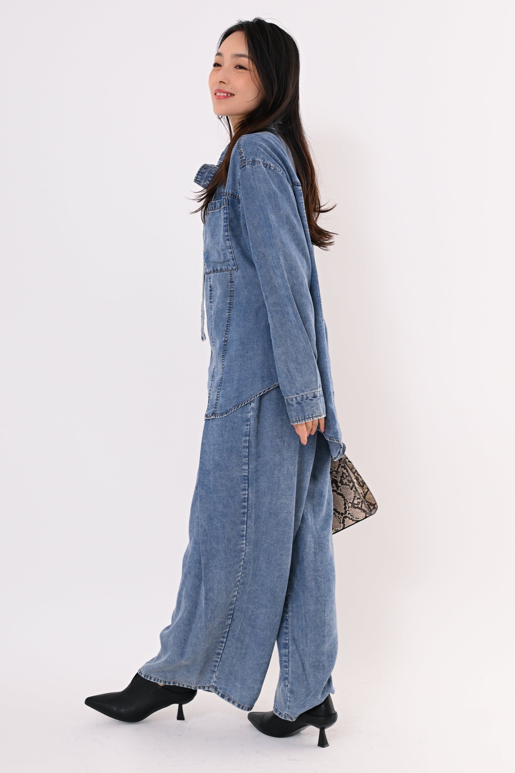 セットアップアイテムとしてテンセルデニムワイドタックパンツも展開しています。