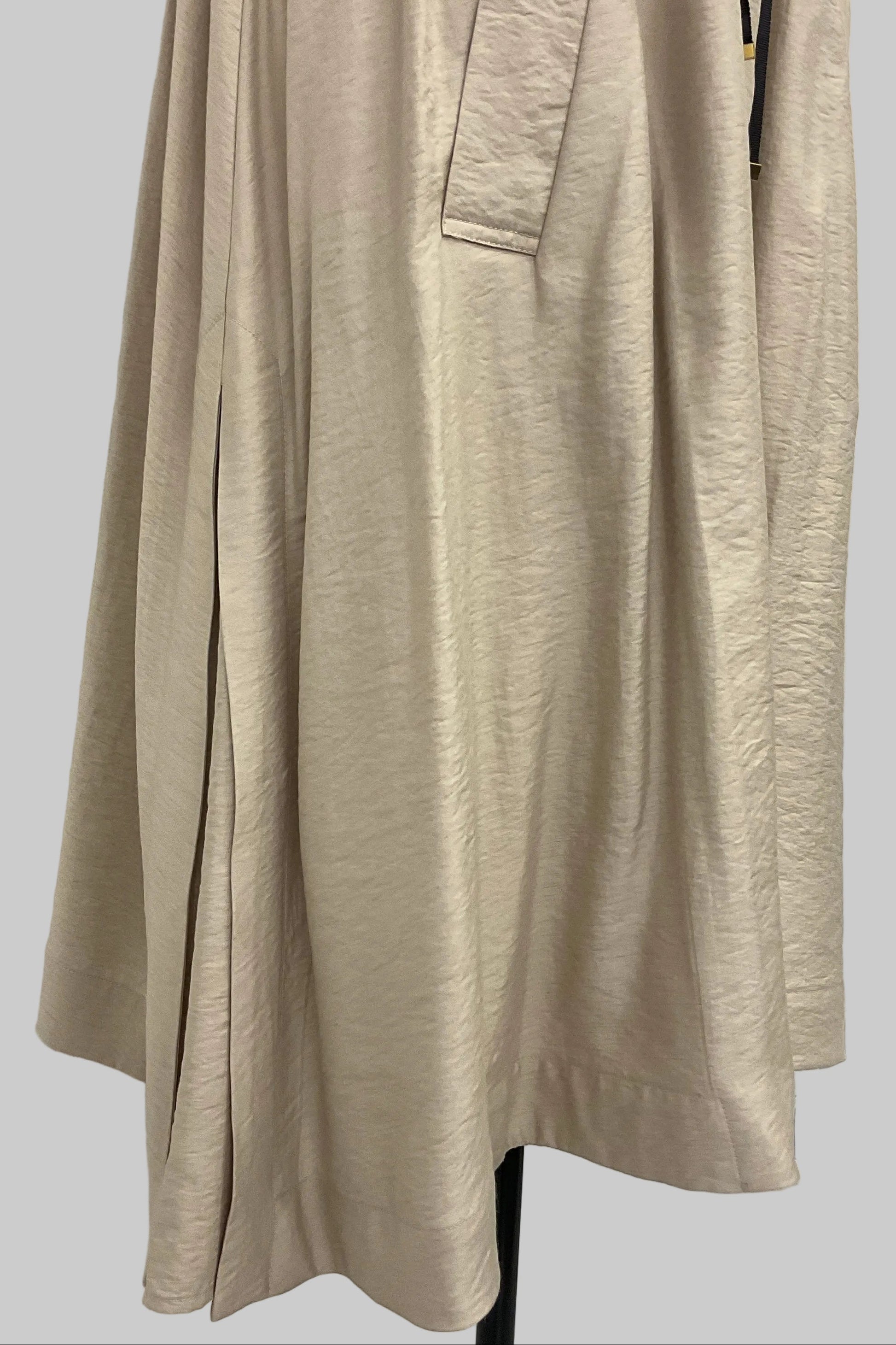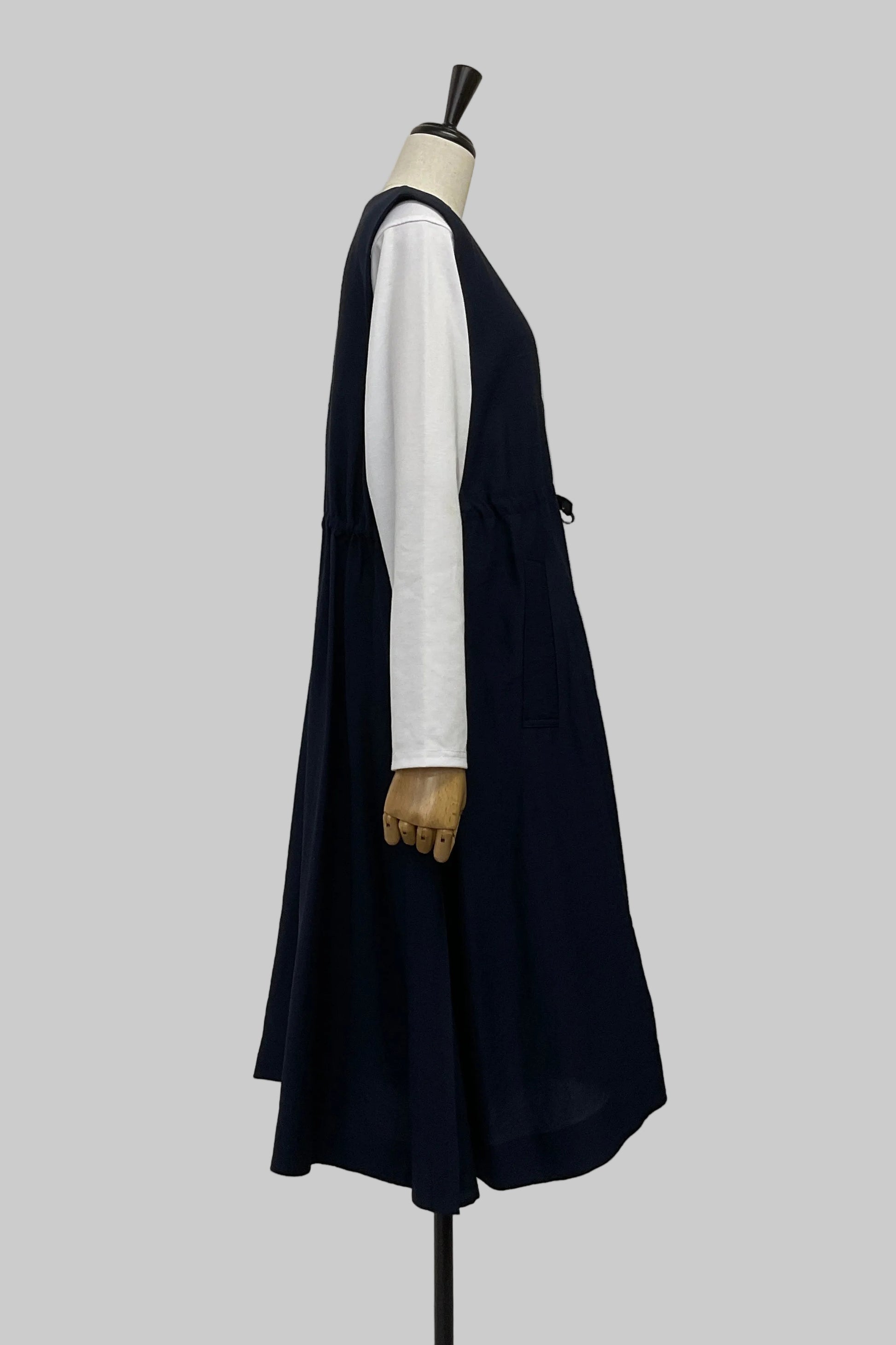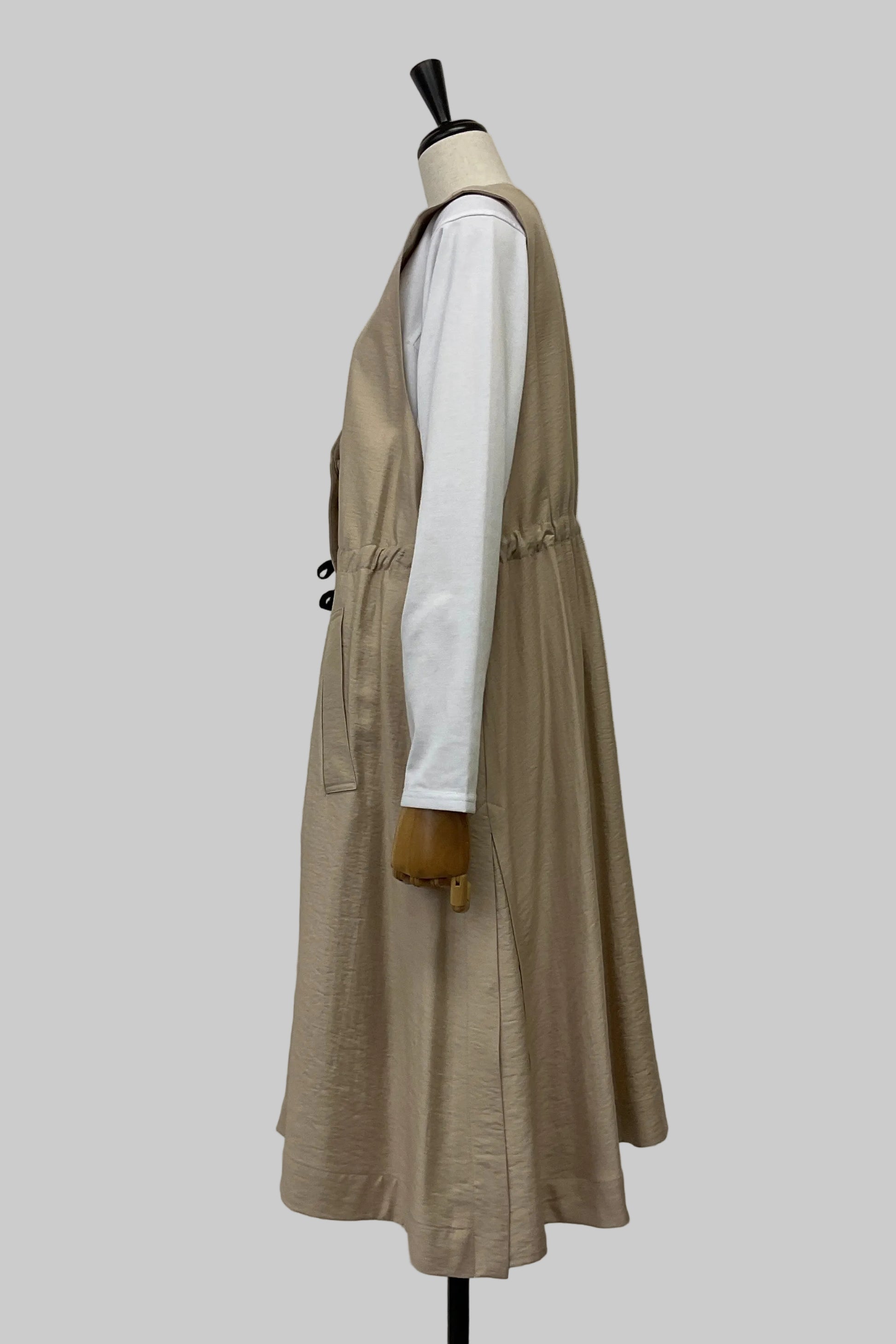 落ち感のあるワッシャーデシン素材を使用した、軽やかなロングジレ。フロントは無駄のないすっきりとしたデザインで、さらっと羽織るだけでスタイリングに自然な奥行きと縦ラインを演出します。ウエスト部分はドロスト仕様になっており、きゅっと絞ってメリハリをつけたり、ゆるめてリラクシーに着たりとシルエットのアレンジが可能。