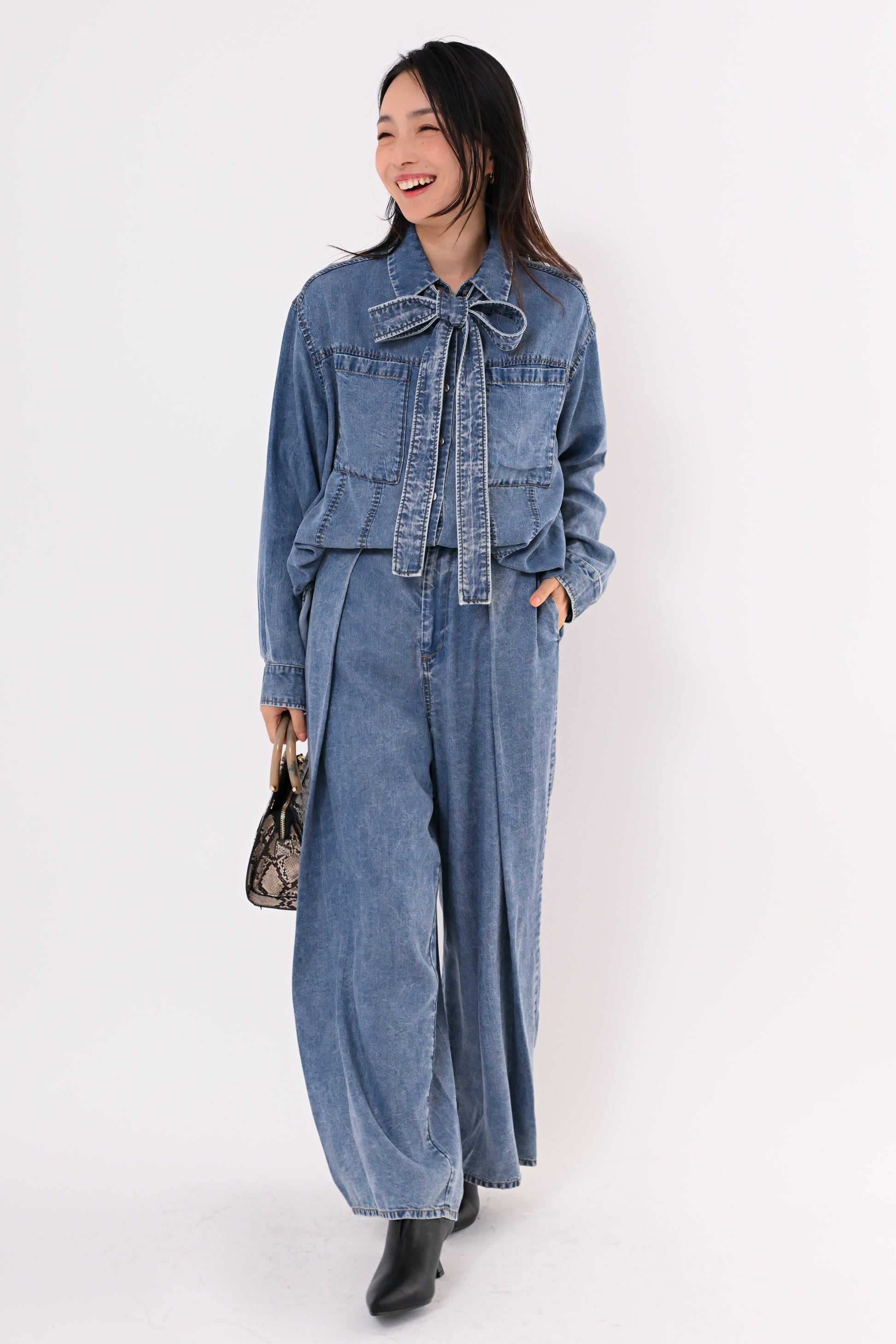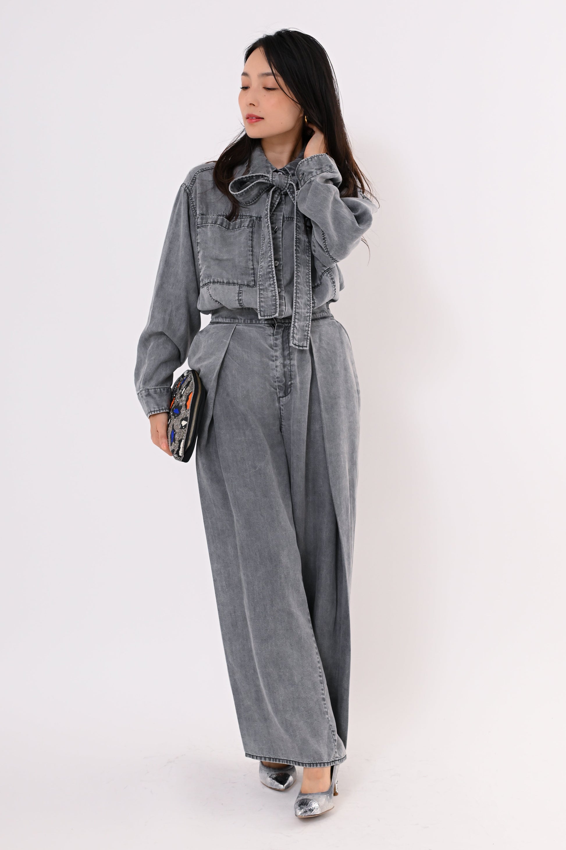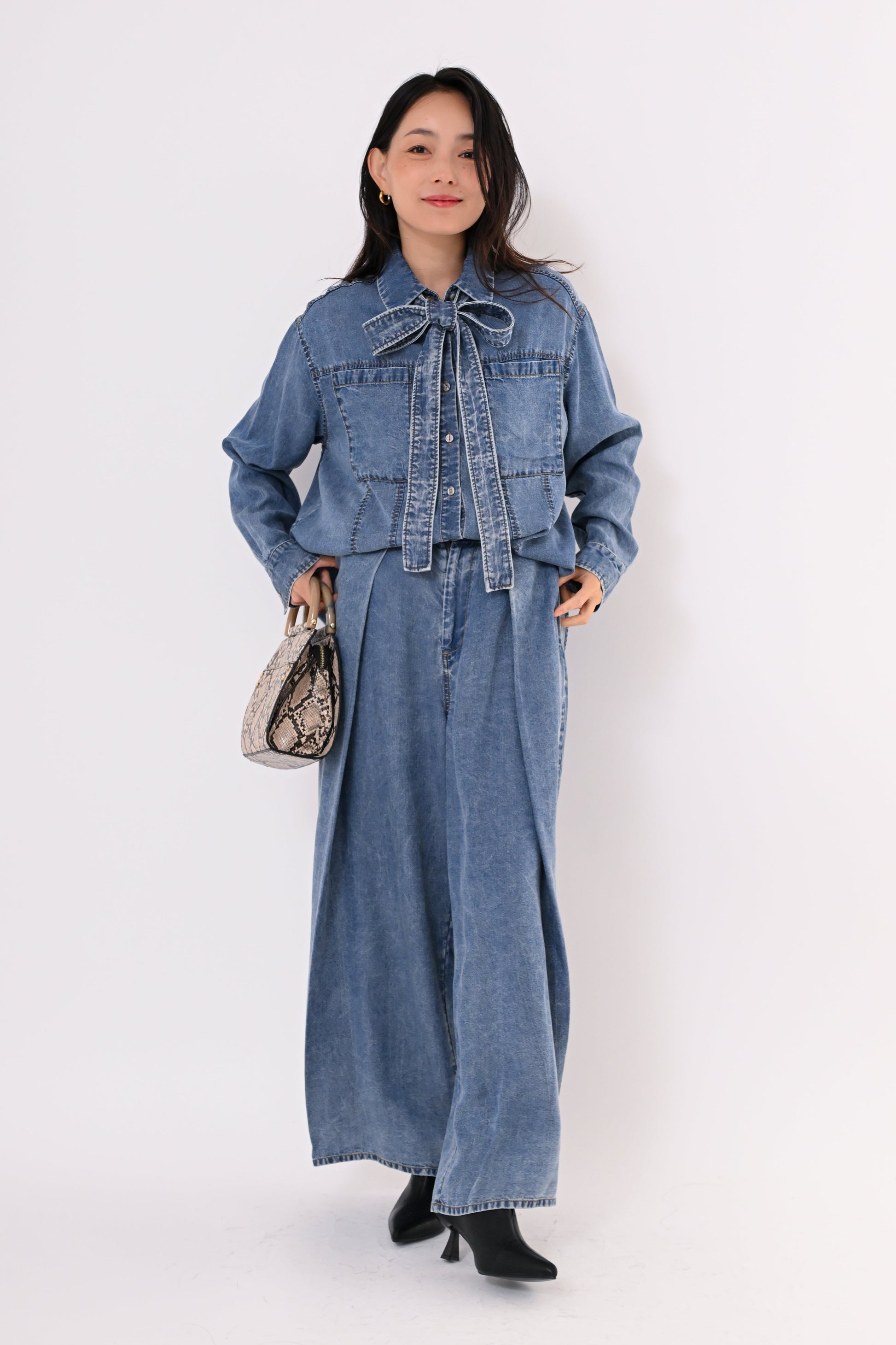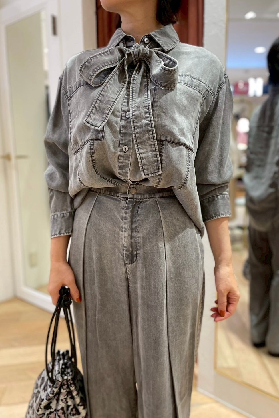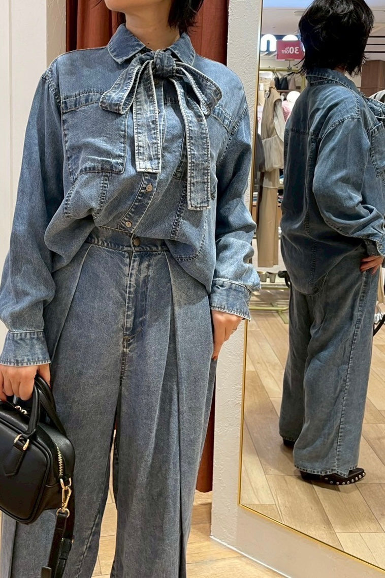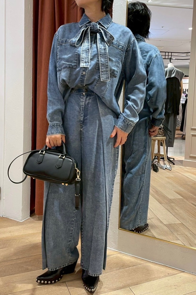 セットアップアイテムとしてテンセルデニムボウタイシャツも展開しています。