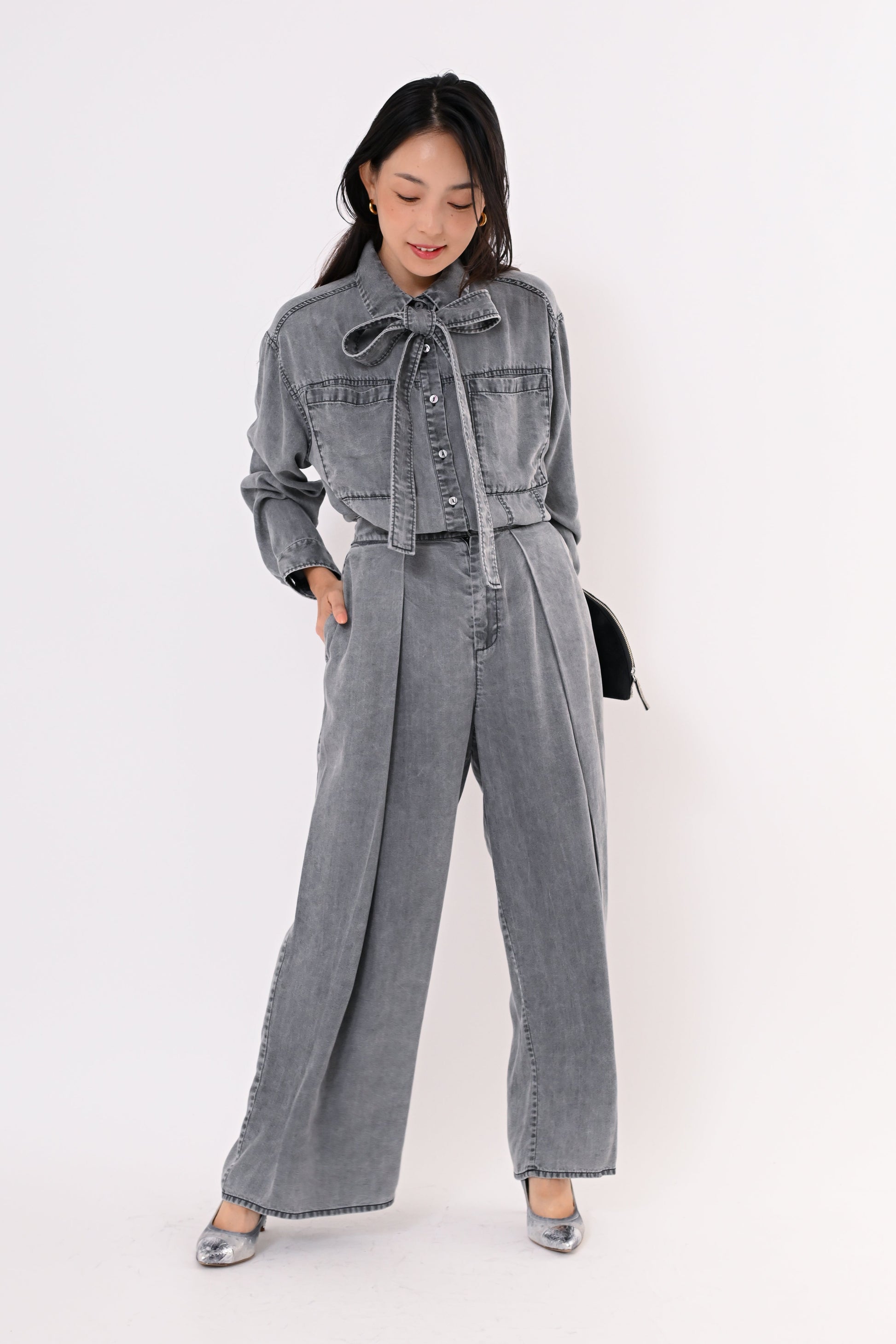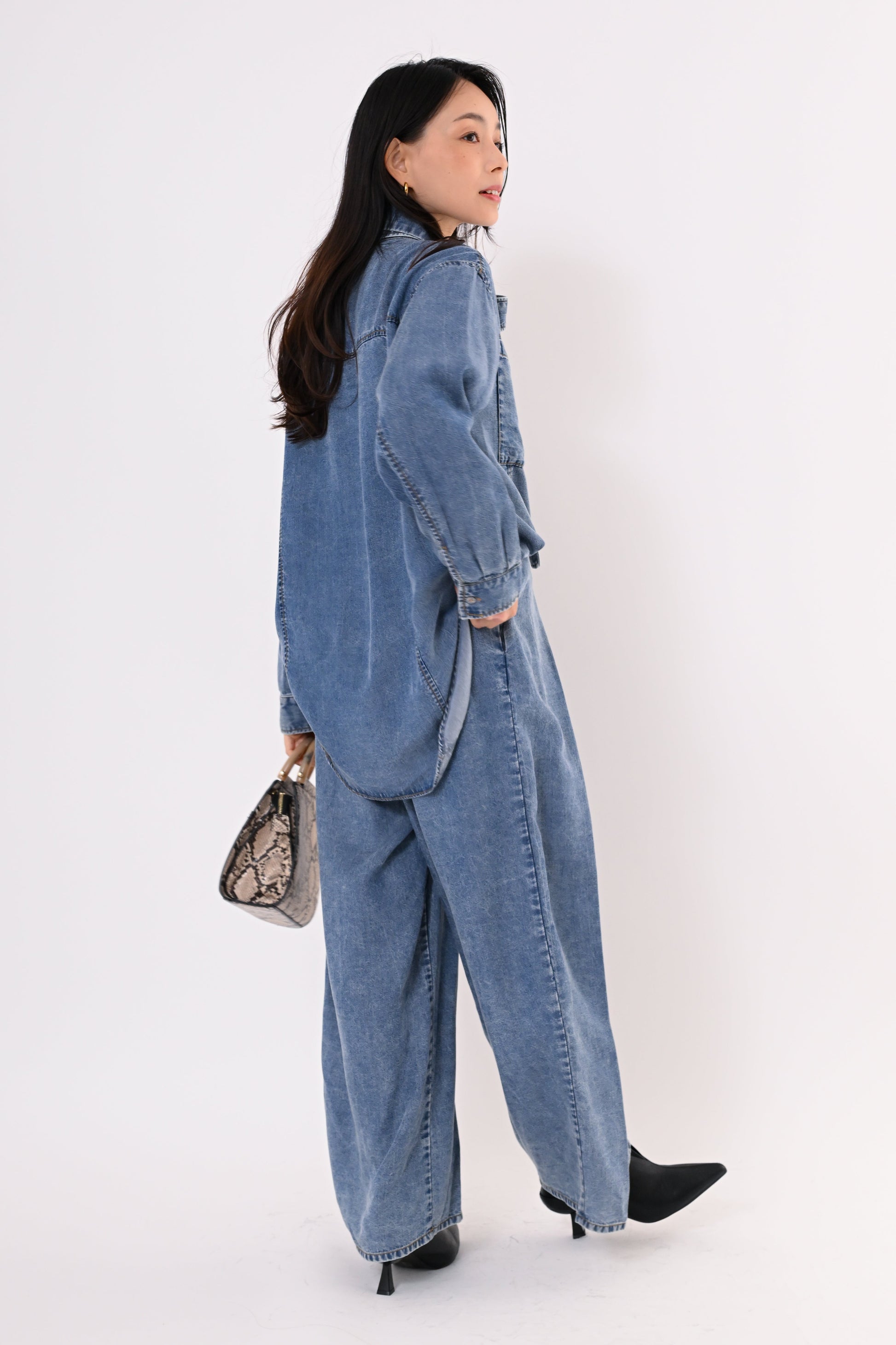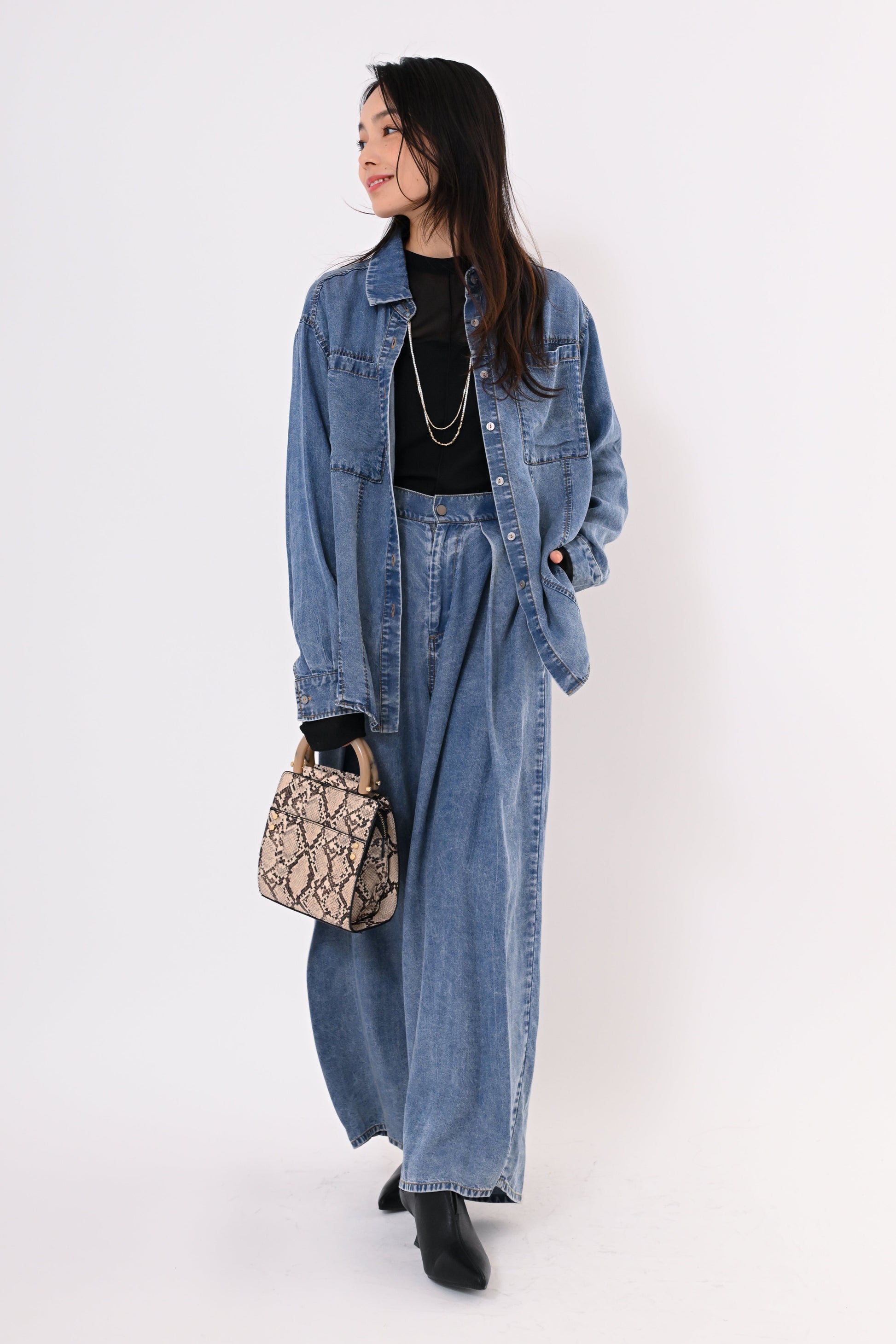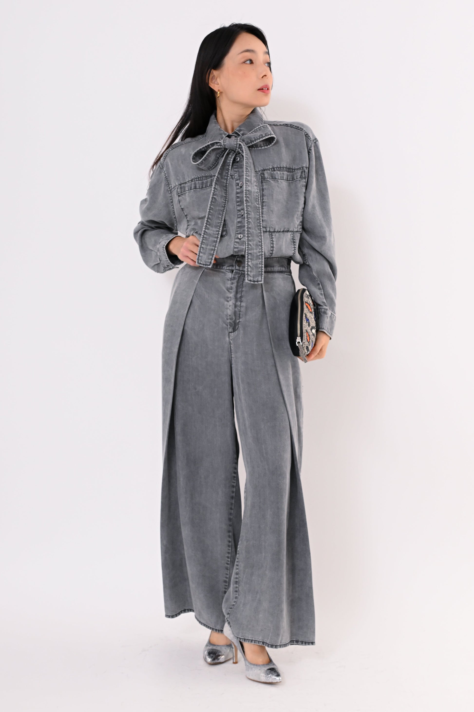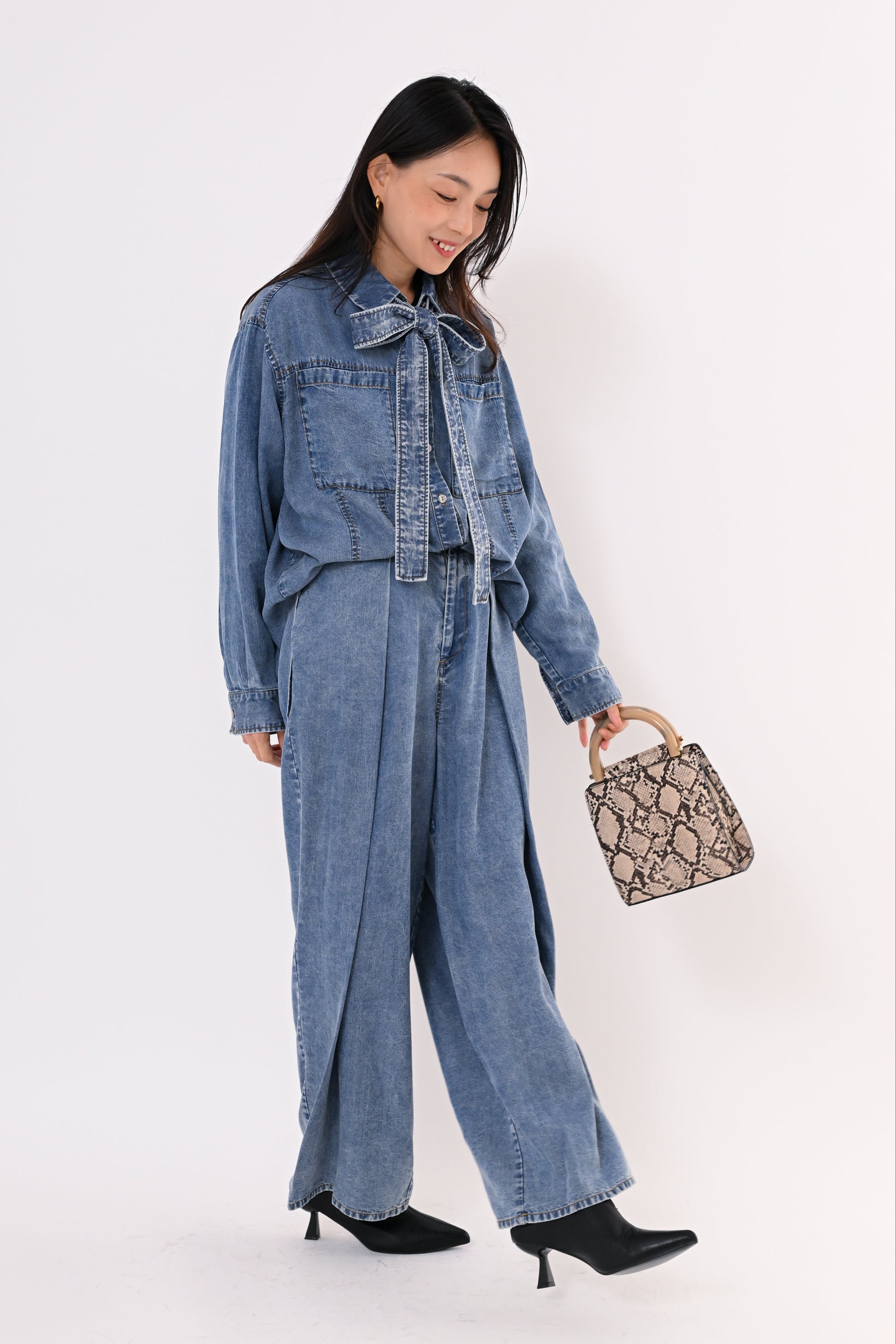 セットアップアイテムとしてテンセルデニムボウタイシャツも展開しています。