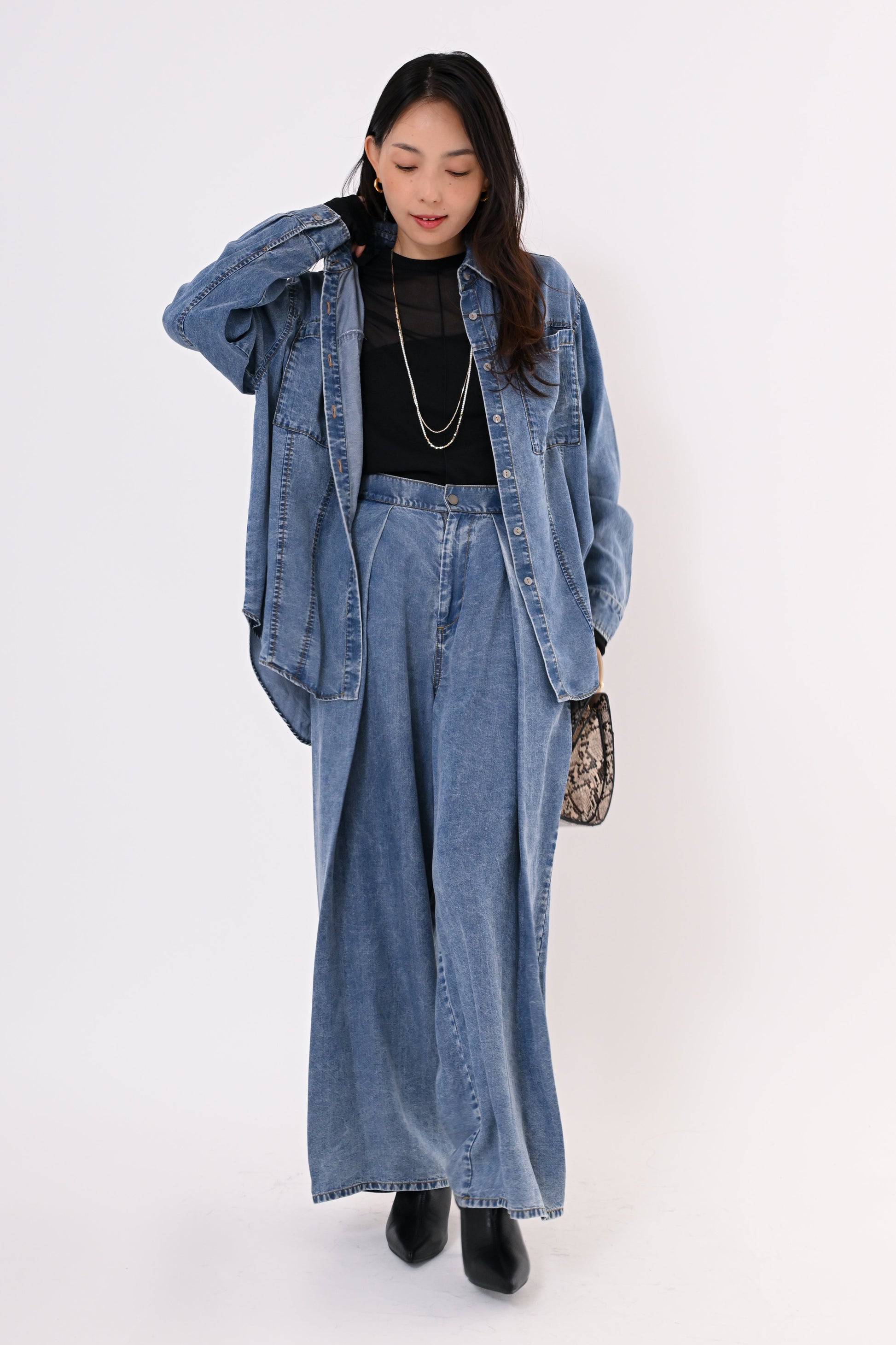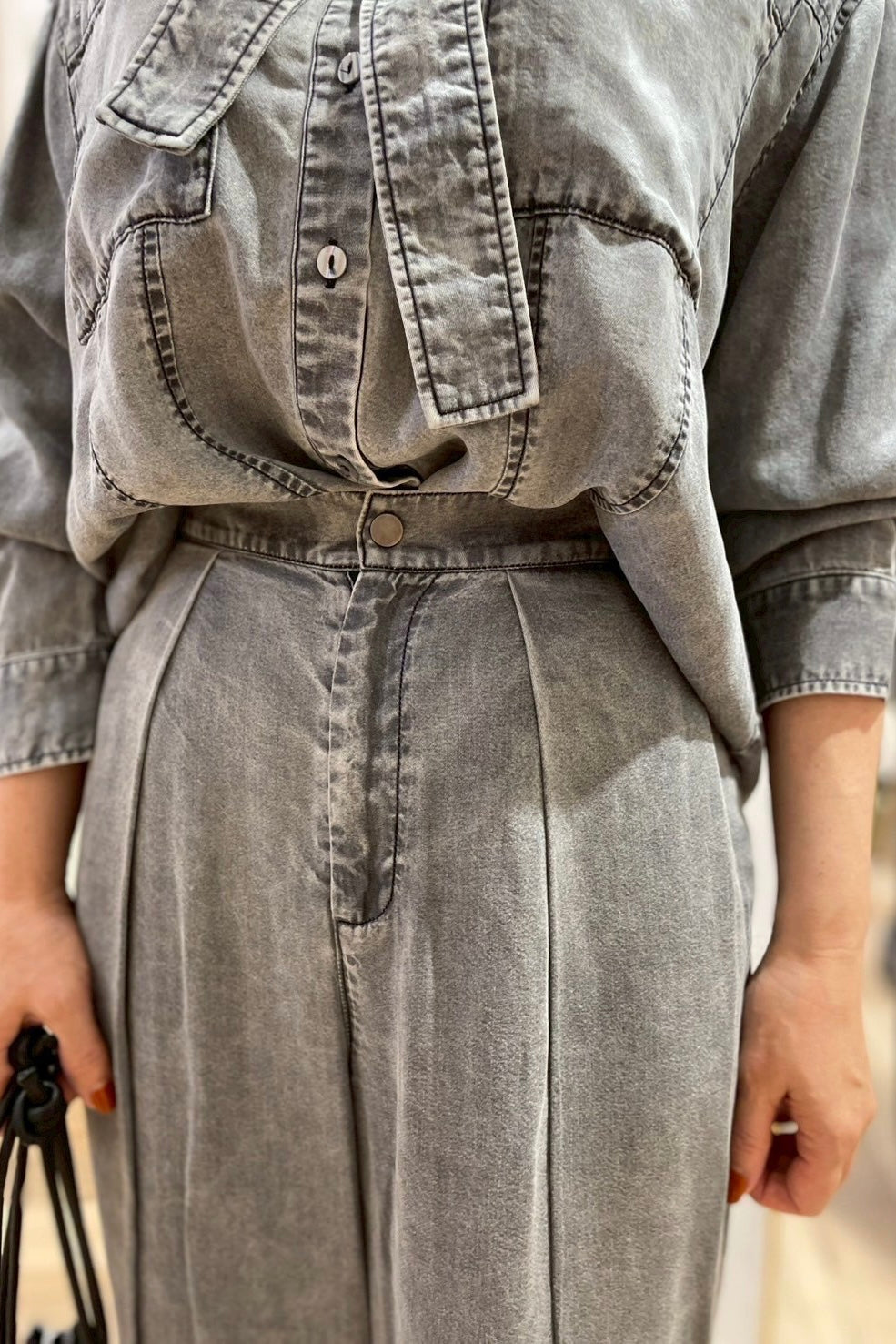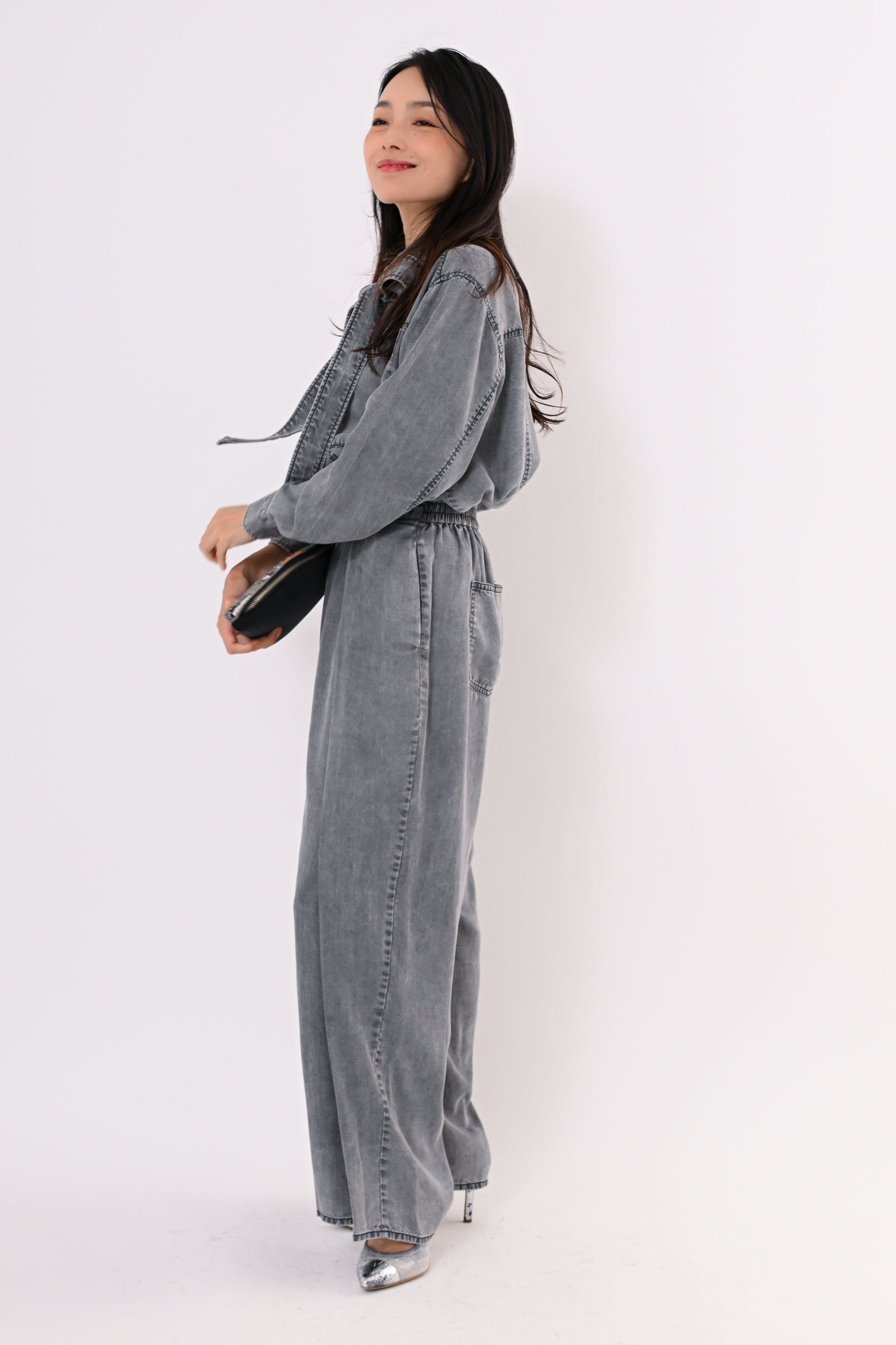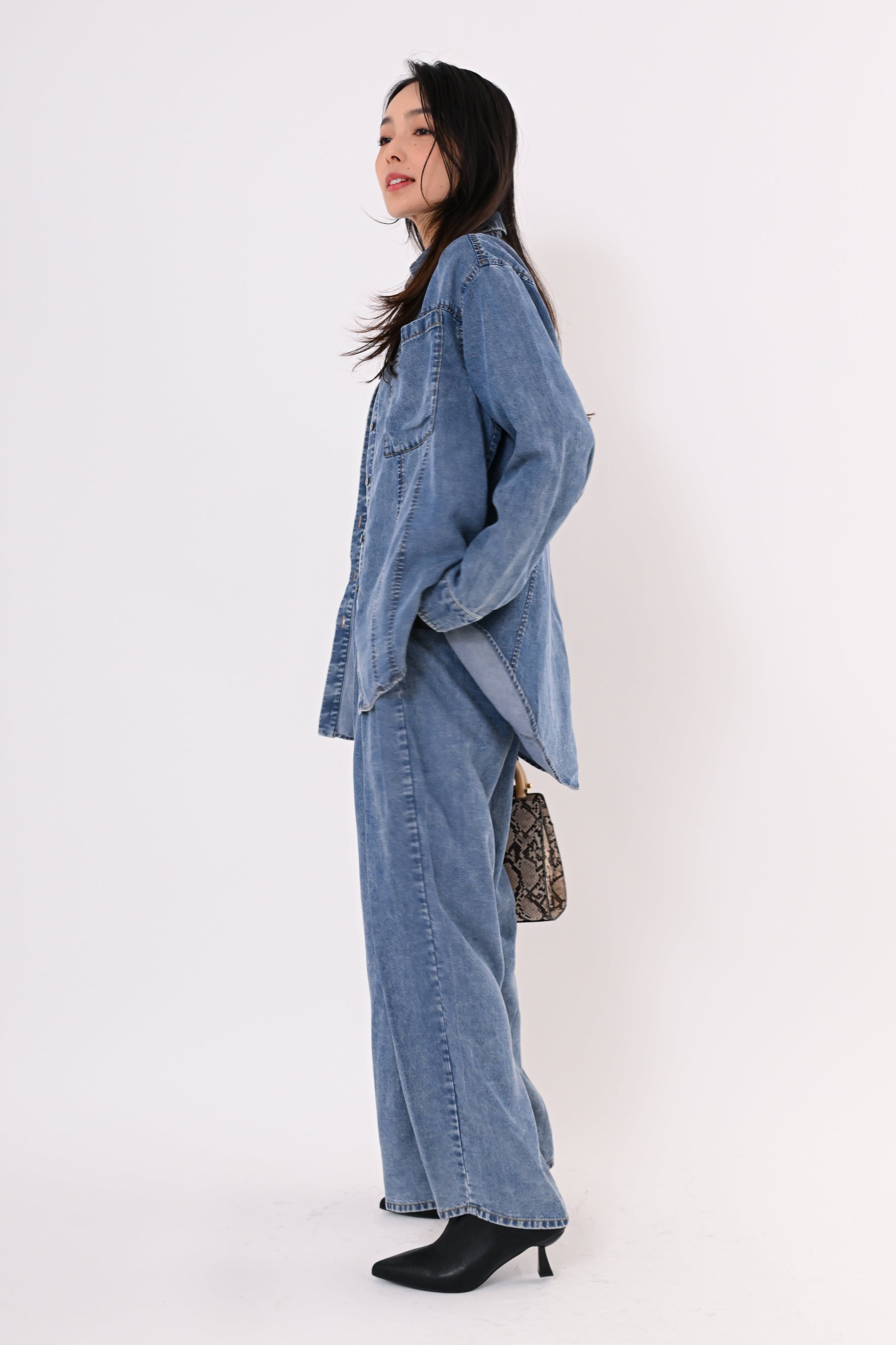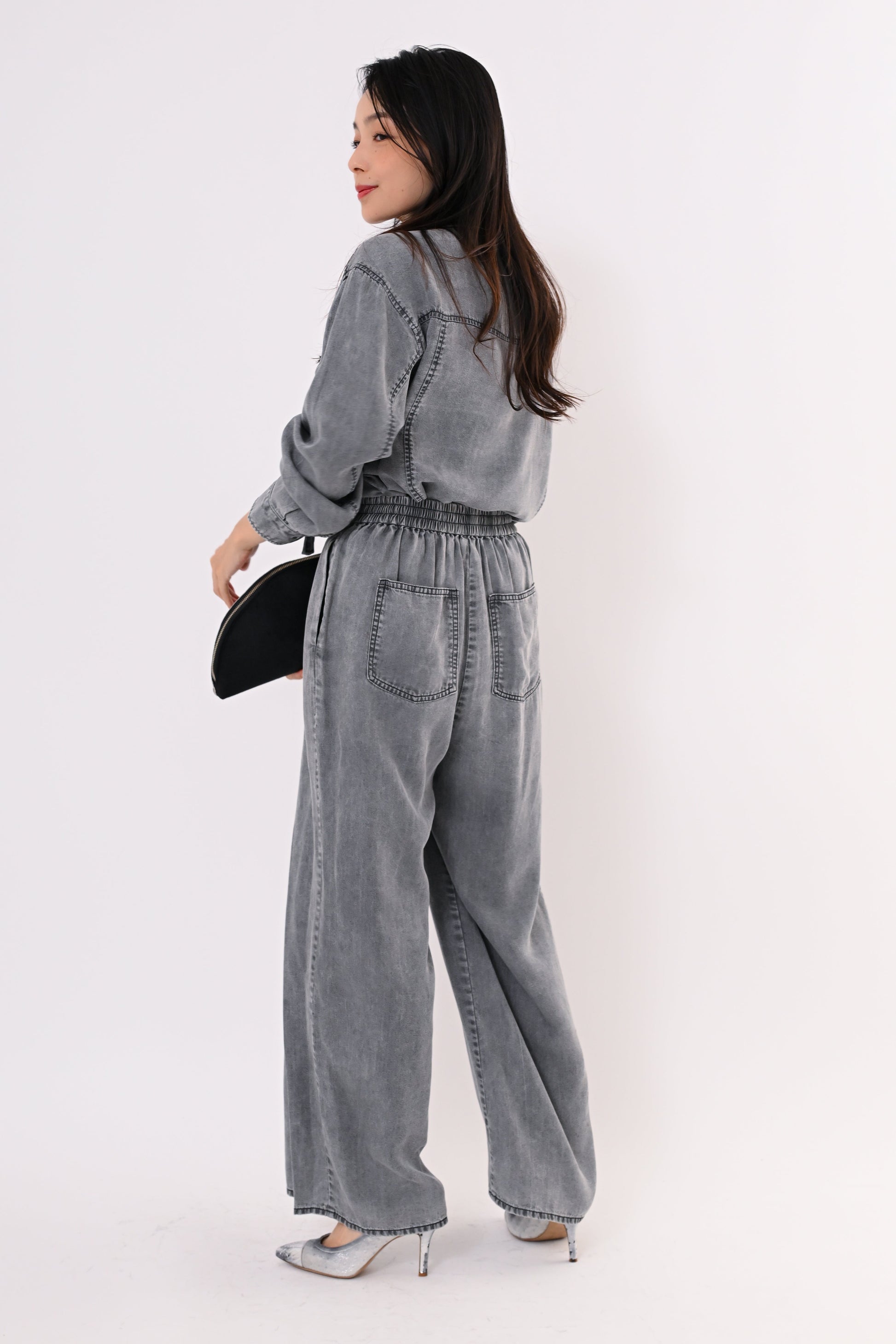 セットアップアイテムとしてテンセルデニムボウタイシャツも展開しています。