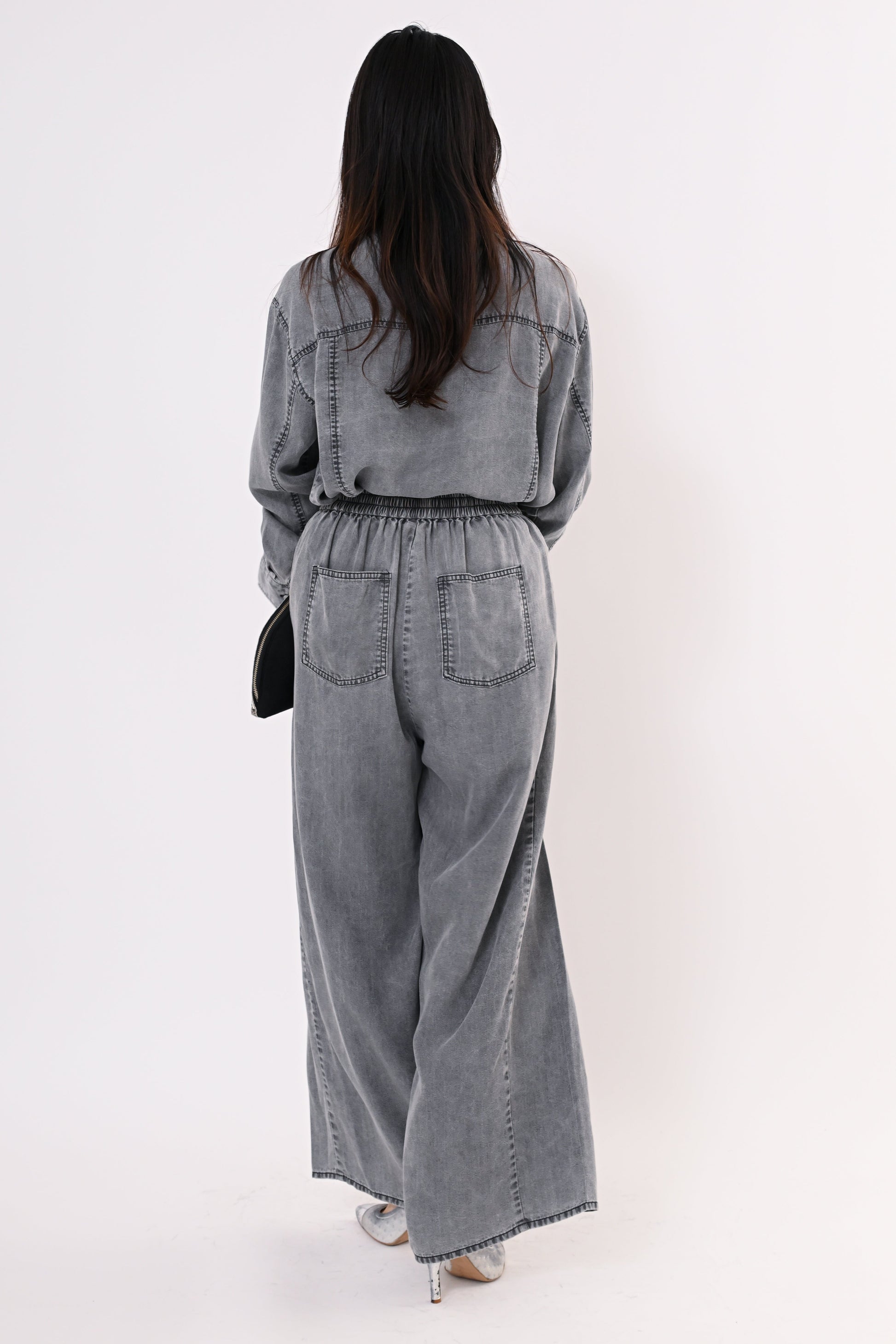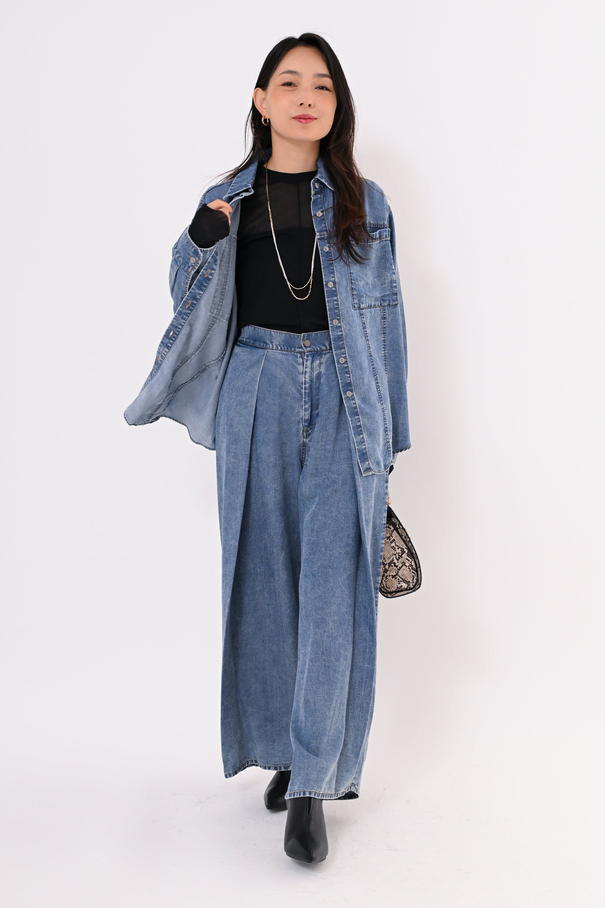 テンセルデニムならではの落ち感と柔らかさが魅力のワイドストレートパンツ。