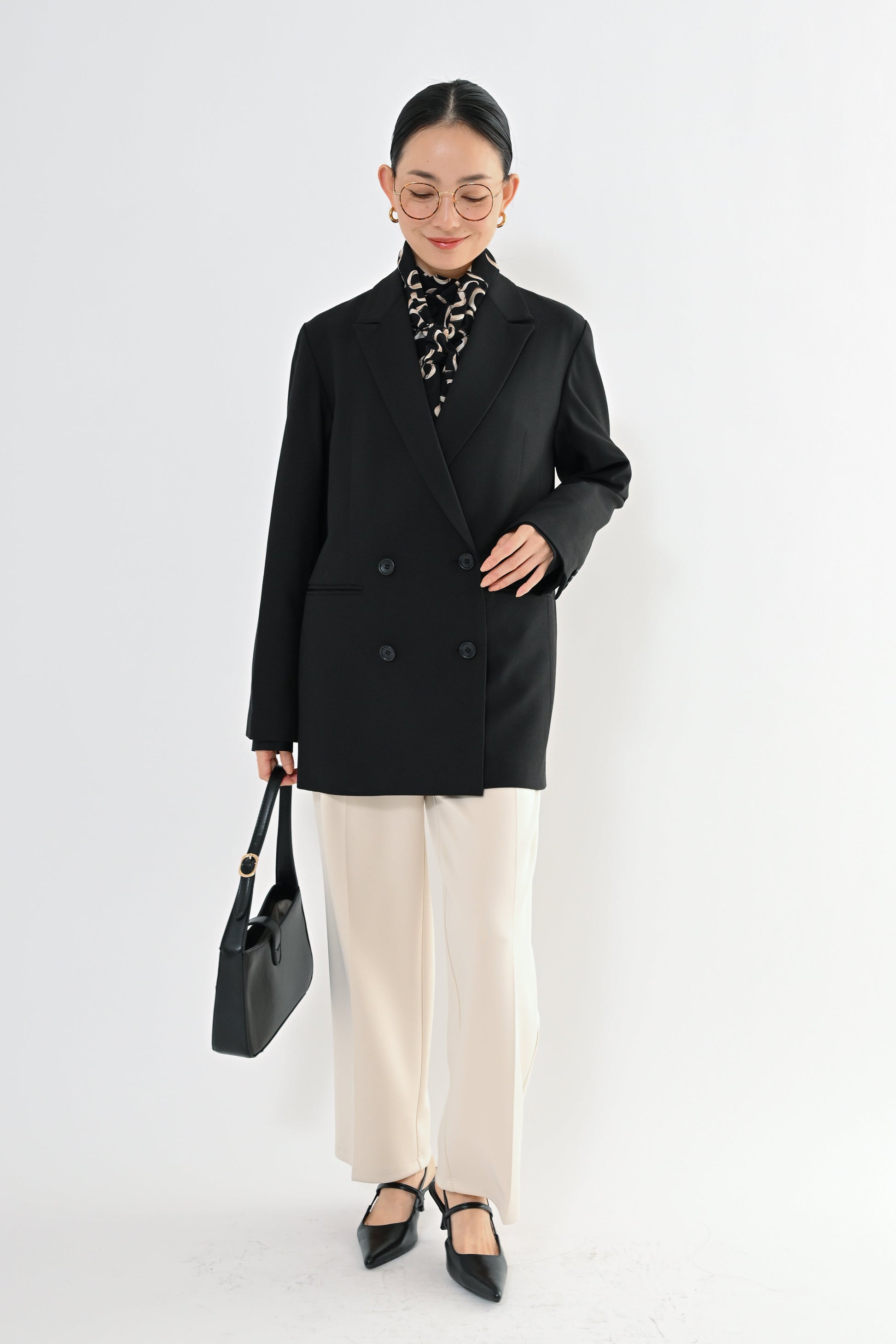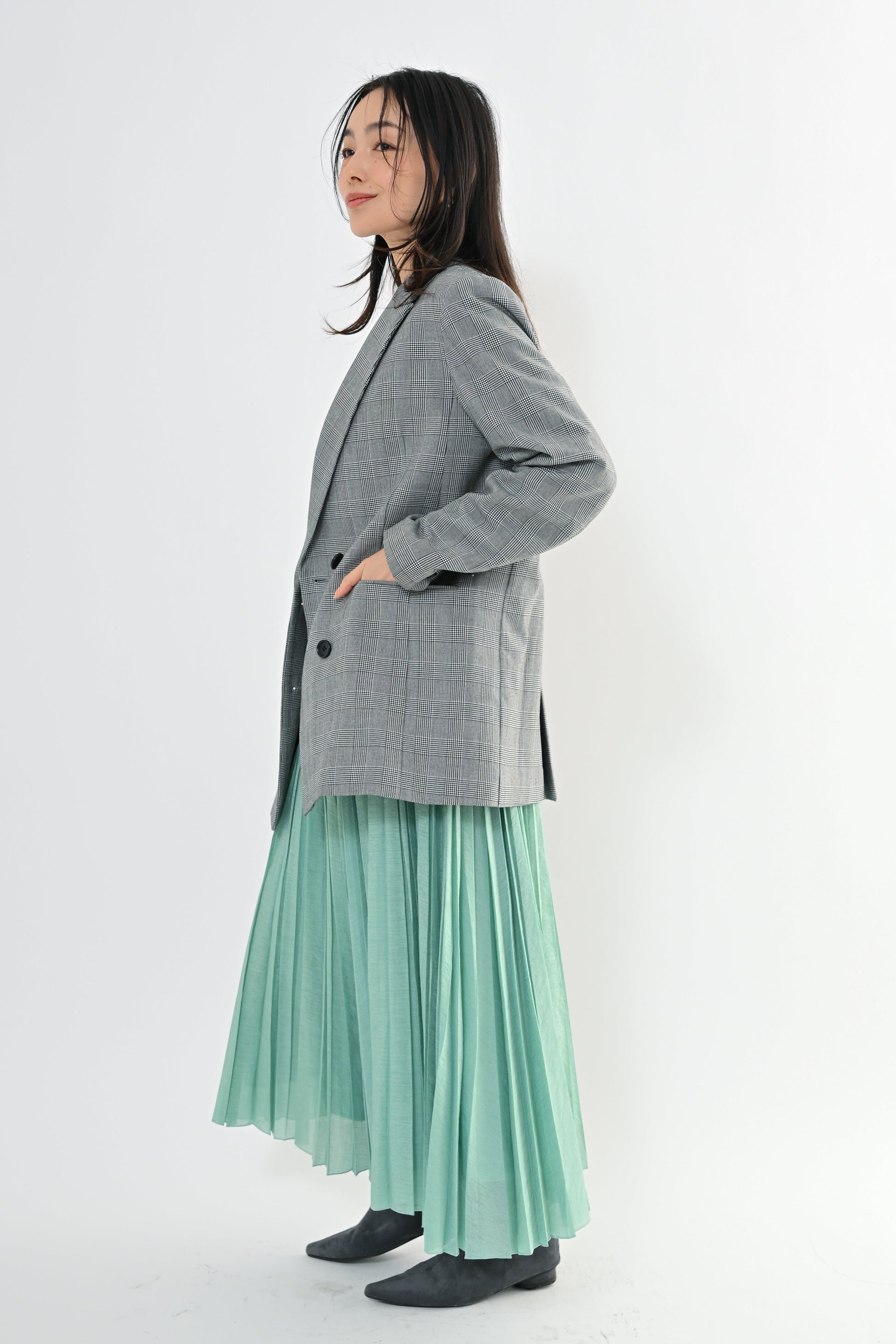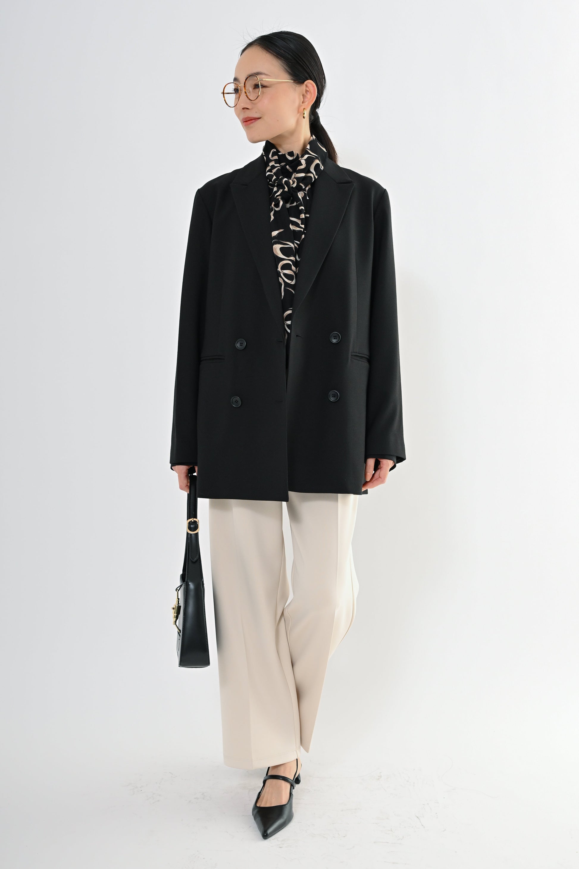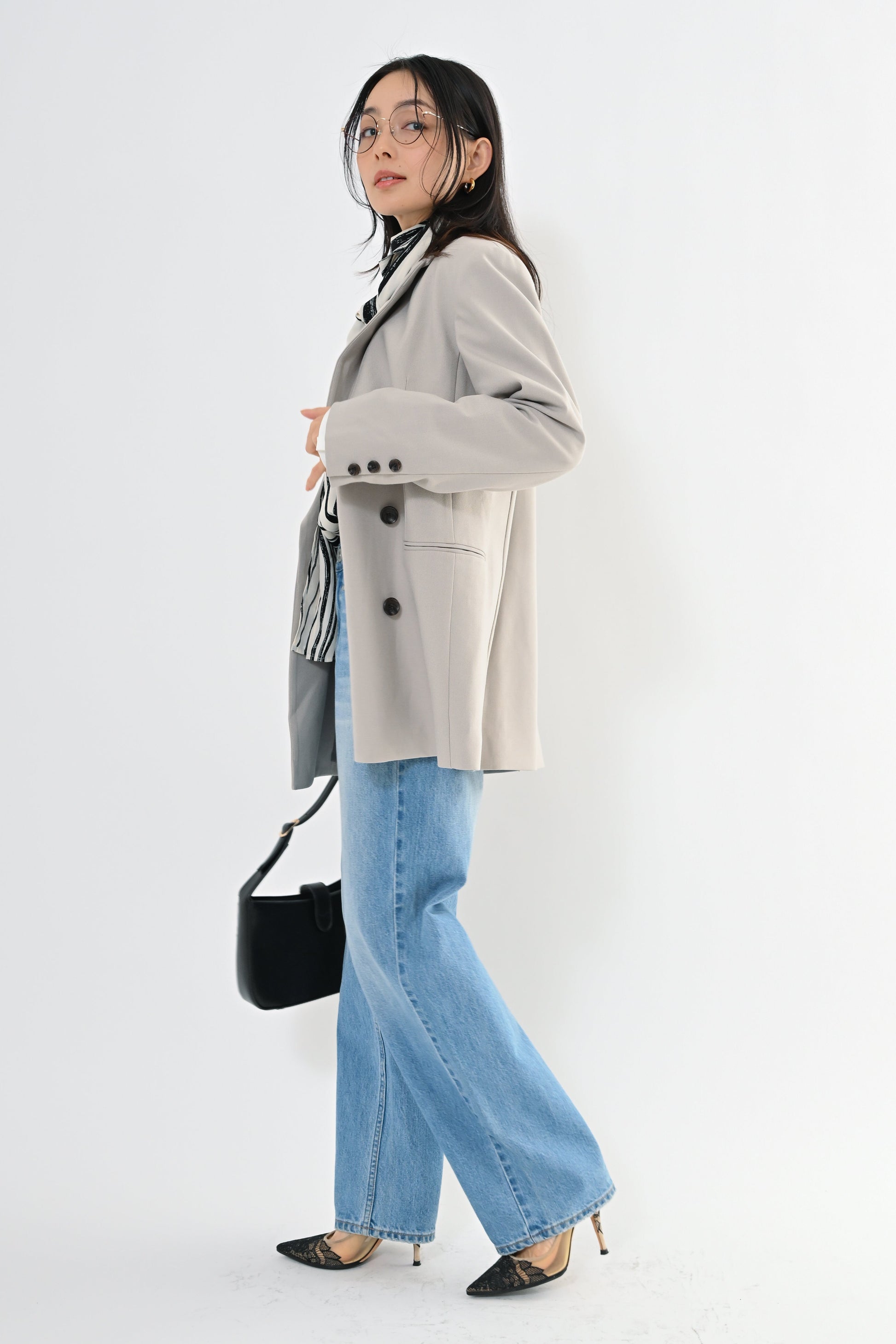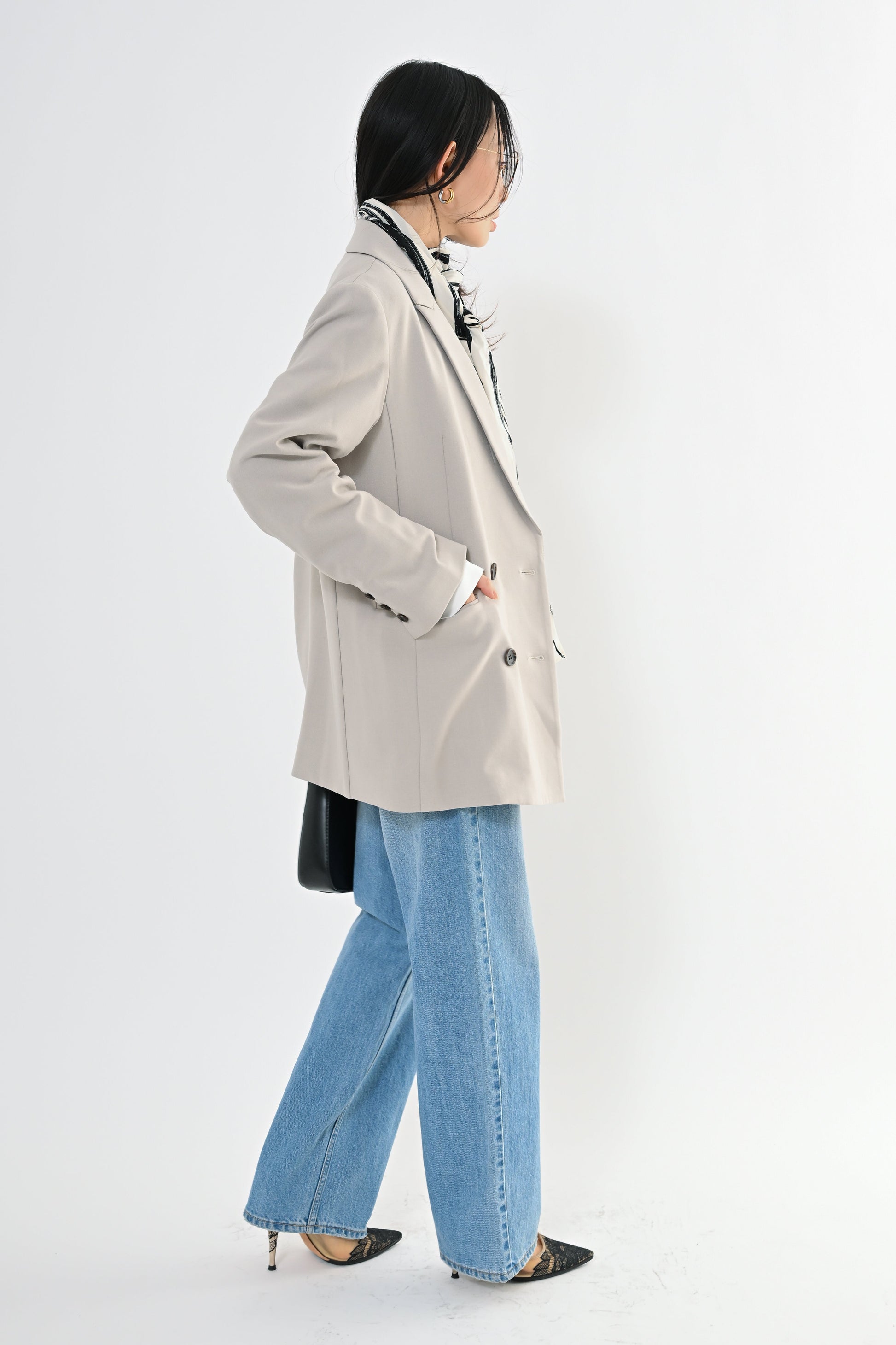 きちんと感のあるデザインでありながら、堅すぎず、フォーマルだけでなく普段のきれいめにも使えるアウターとして活躍します。