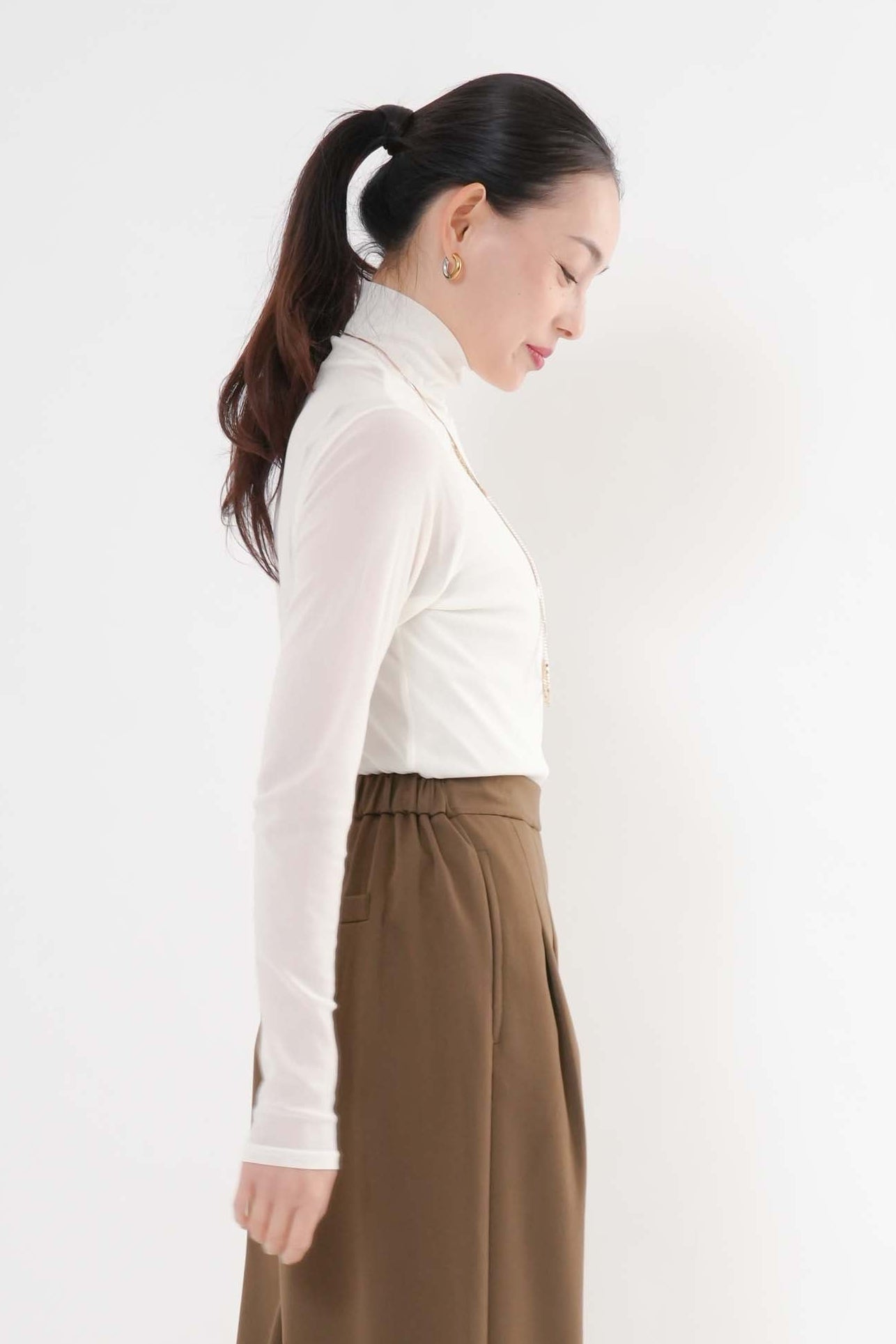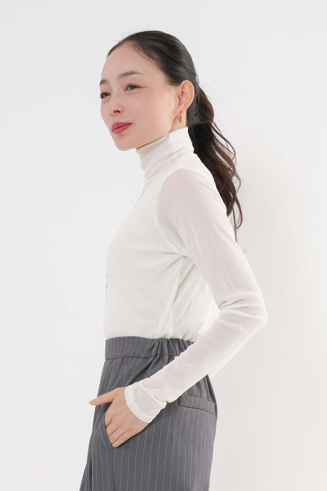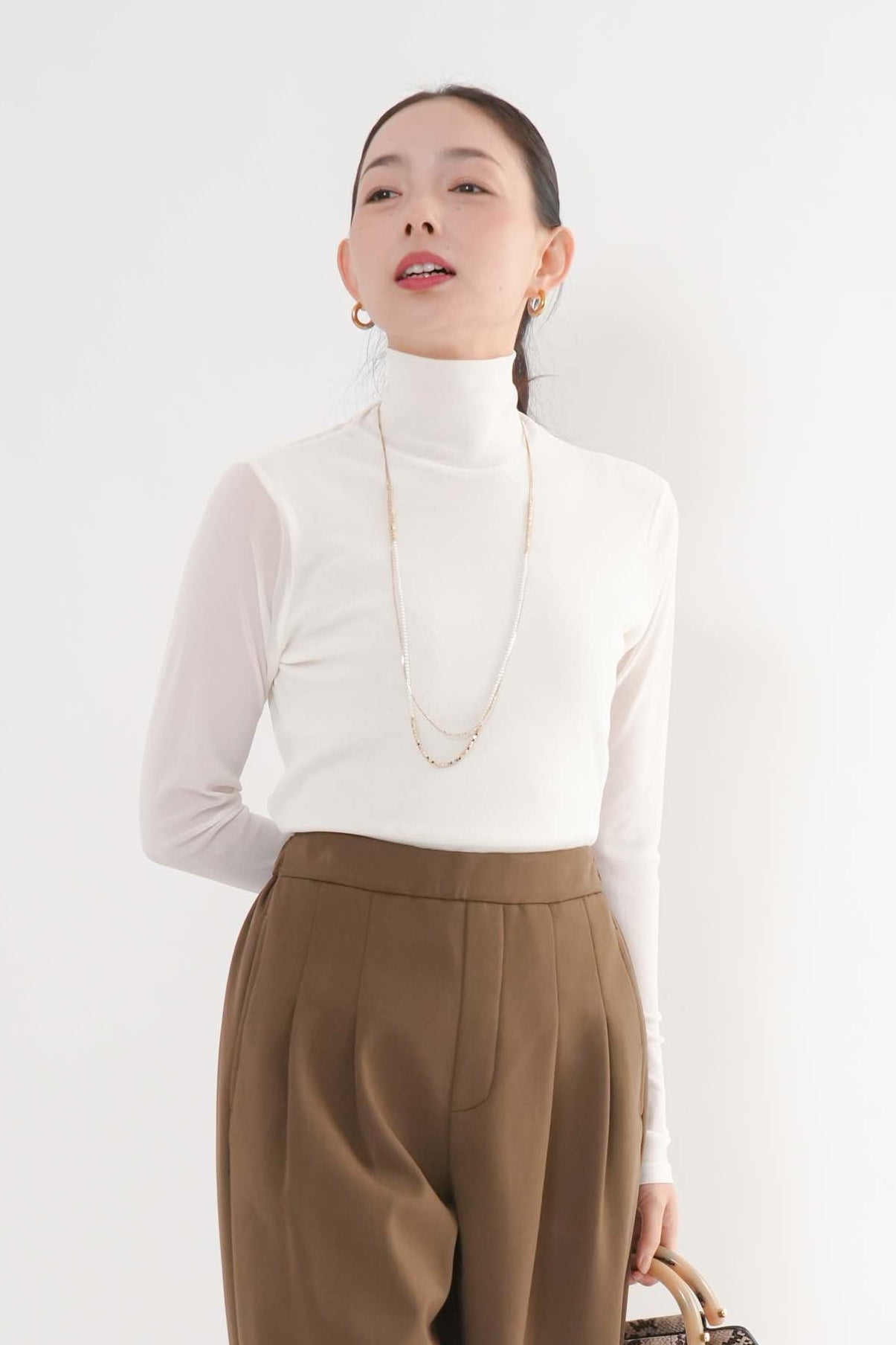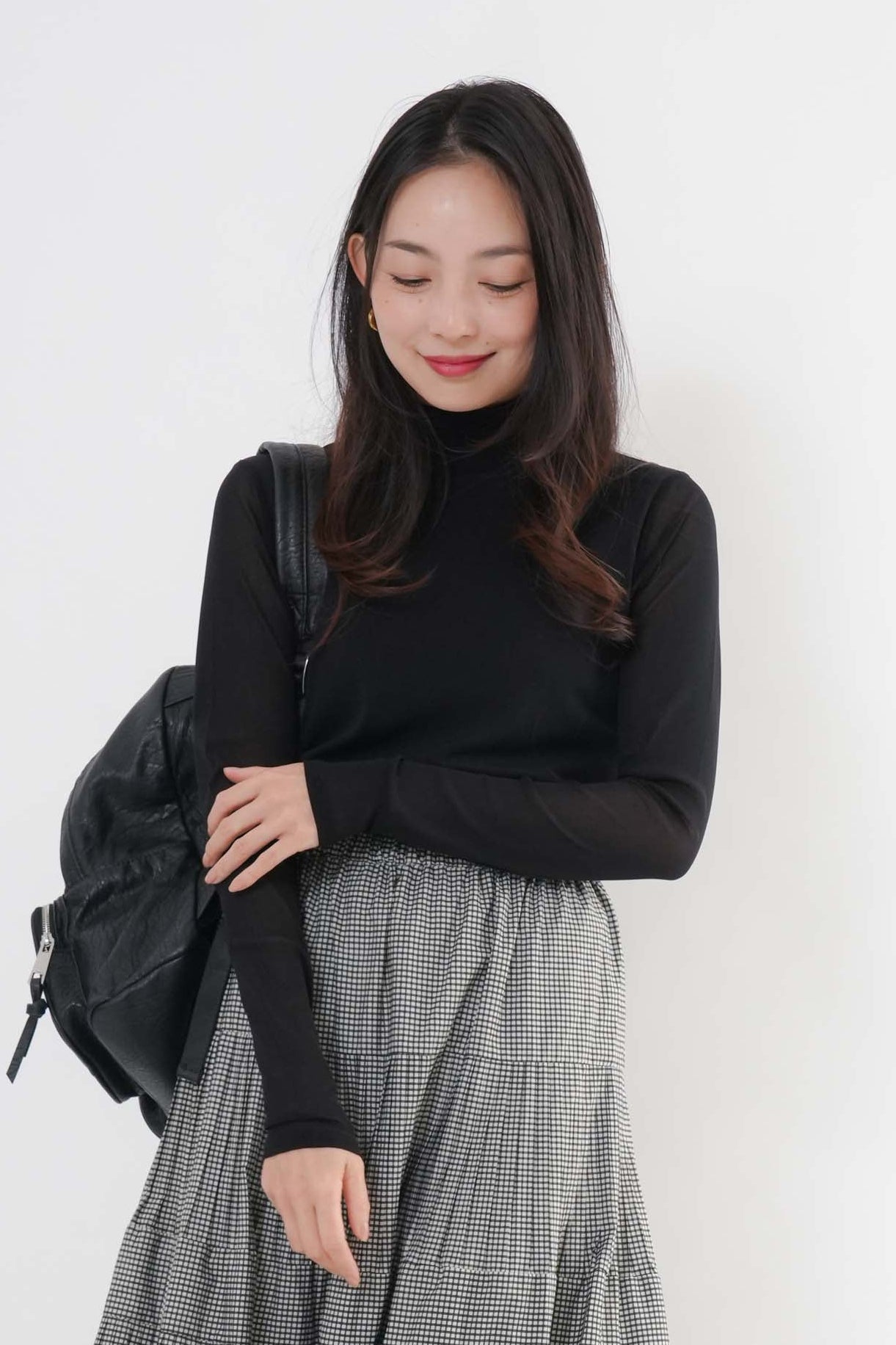 ハイネック&長めの袖で、ニットやシャツの下に重ねるだけで旬なレイヤードスタイルが完成します。