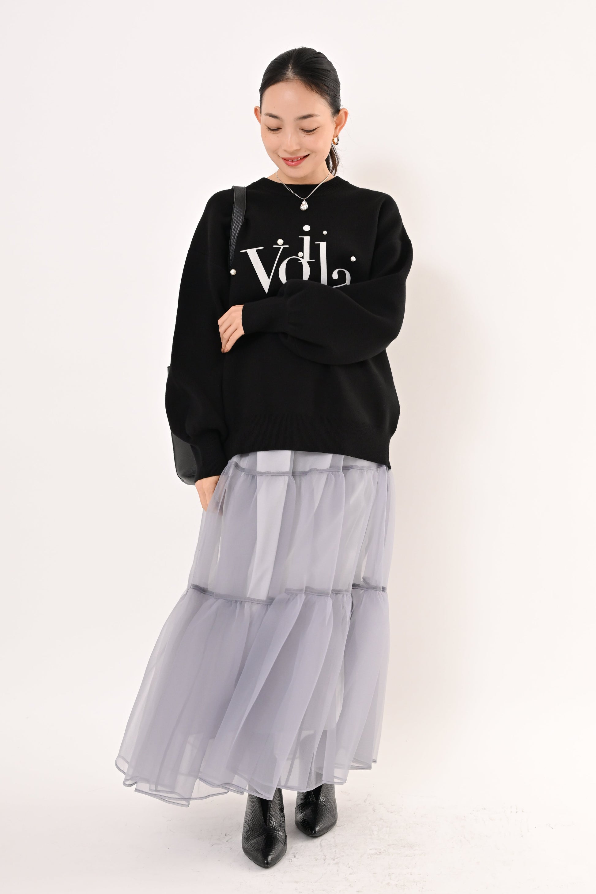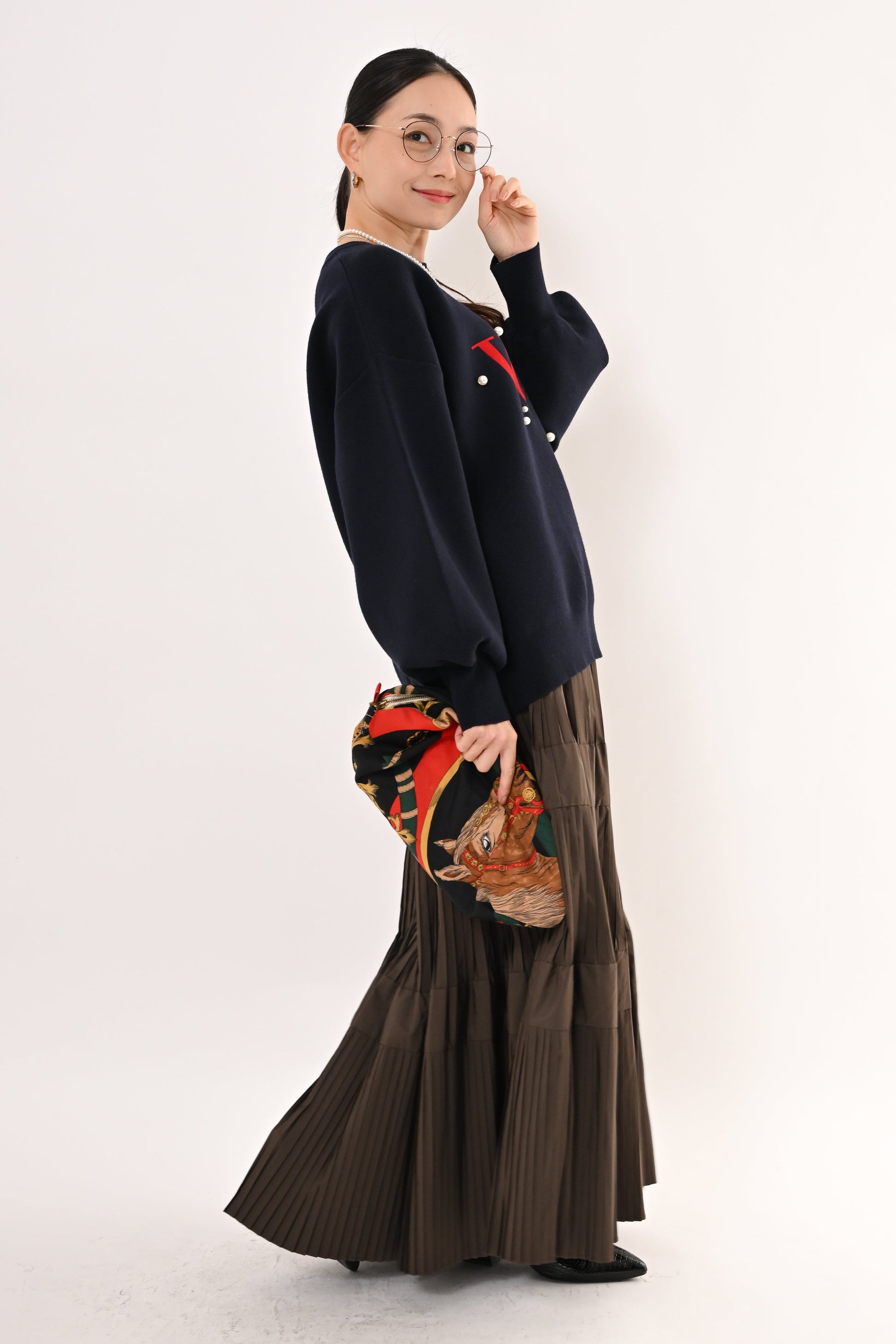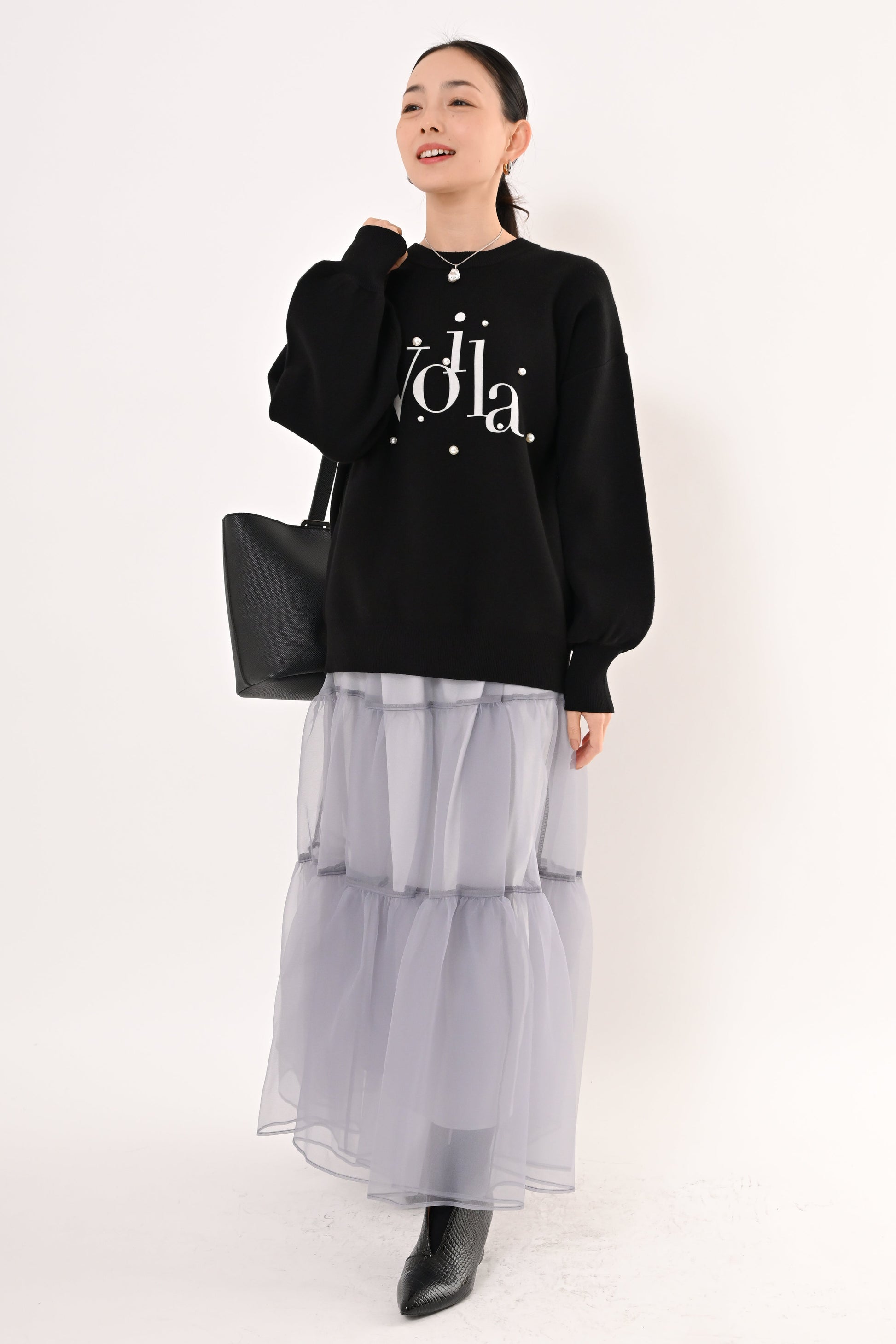 大人の華やかさをさりげなく演出する「パール×ロゴ」ニット