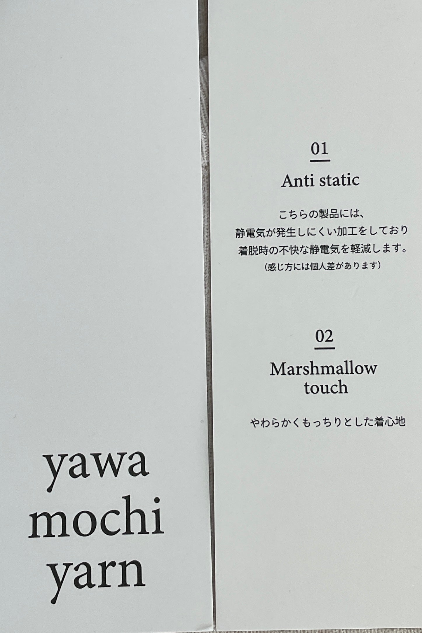 やわらかくもっちりとした“やわもちヤーン”素材を使用し、思わず触れたくなるような心地よさが魅力の一枚。